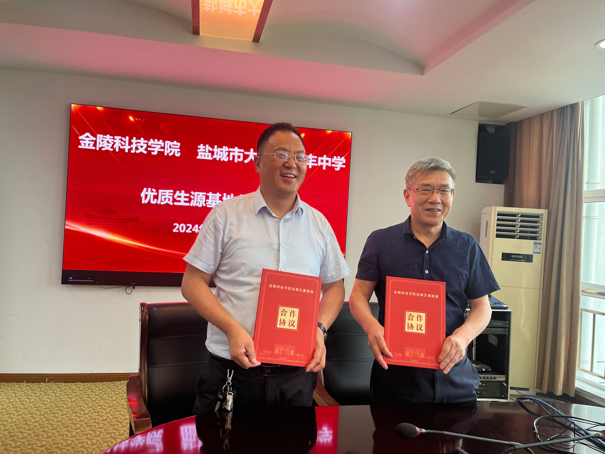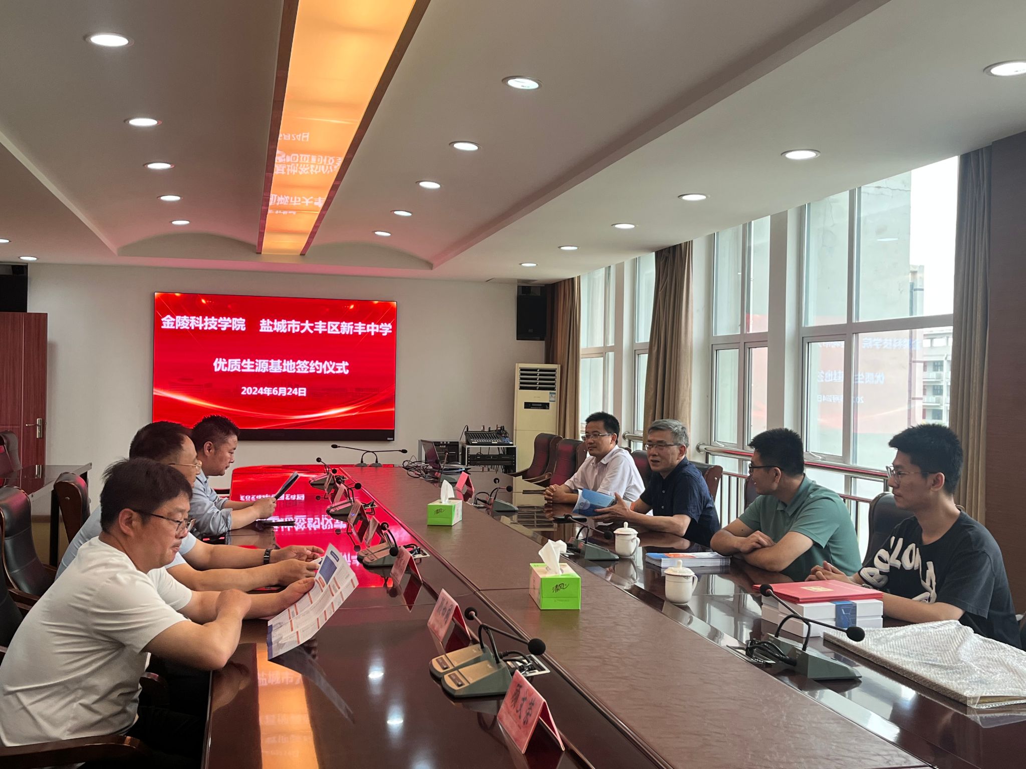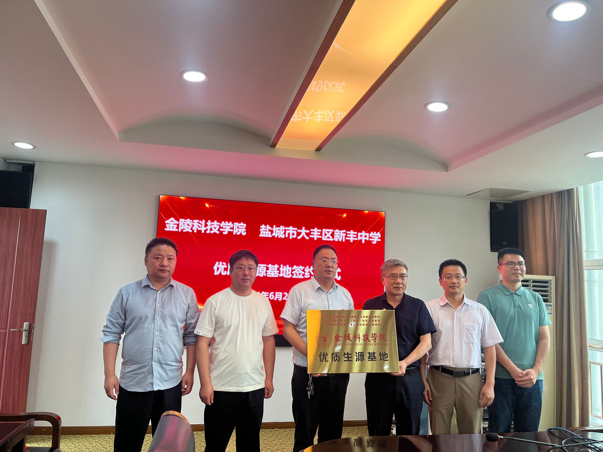6月24日下昼,,,,,,,我校与盐都会大丰区新丰中学举行优质生源基地签约挂牌仪式,,,,,,,网络清静学院党总支书记叶海青、副院长阎浩,,,,,,,盐都会大丰区新丰中学副校长陈小龙,,,,,,,副校长徐海兵等加入仪式。。。。。。