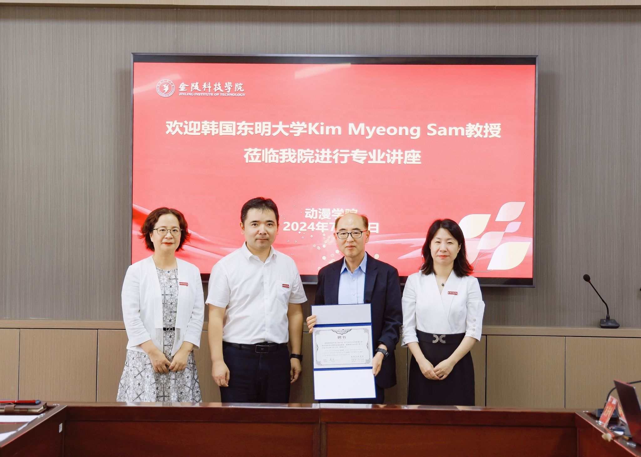 讲座最先前,,,,,,王贤波与戴维、赵宁等一起为Kim Myeong Sam教授揭晓了客座教授聘书。。。。。。。。讲座中,,,,,,Kim Myeong Sam围绕主题睁开讲座,,,,,,他从人工智能对艺术家的创作头脑影响的角度举行研究效果分享,,,,,,受到了师生们的一致好评。。。。。。。。时代,,,,,,王贤波先容了学院的中韩专业建设基础与未来国际相助增进学院多元生长,,,,,,并期待双方围绕已有研究院的相助基础,,,,,,团结学校的外国专家事情室等平台,,,,,,进一步开展双方在学术领域的协同,,,,,,配合举行国际影像大赛,,,,,,开展师生交流运动。。。。。。。。