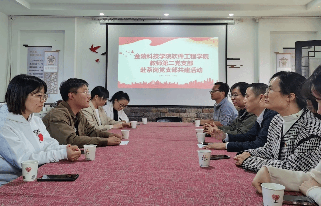 11月6日,,,,,我校软件工程学院西席第二党支部与江宁茶岗村党总支开展团结党建运动。。。。。。。。茶岗村党总支委员、村委会副主任纪阳,,,,,软件工程学院党委书记戴军,,,,,副院长、西席第二党支部书记赵海峰以及西席党员加入了本次运动。。。。。。。。