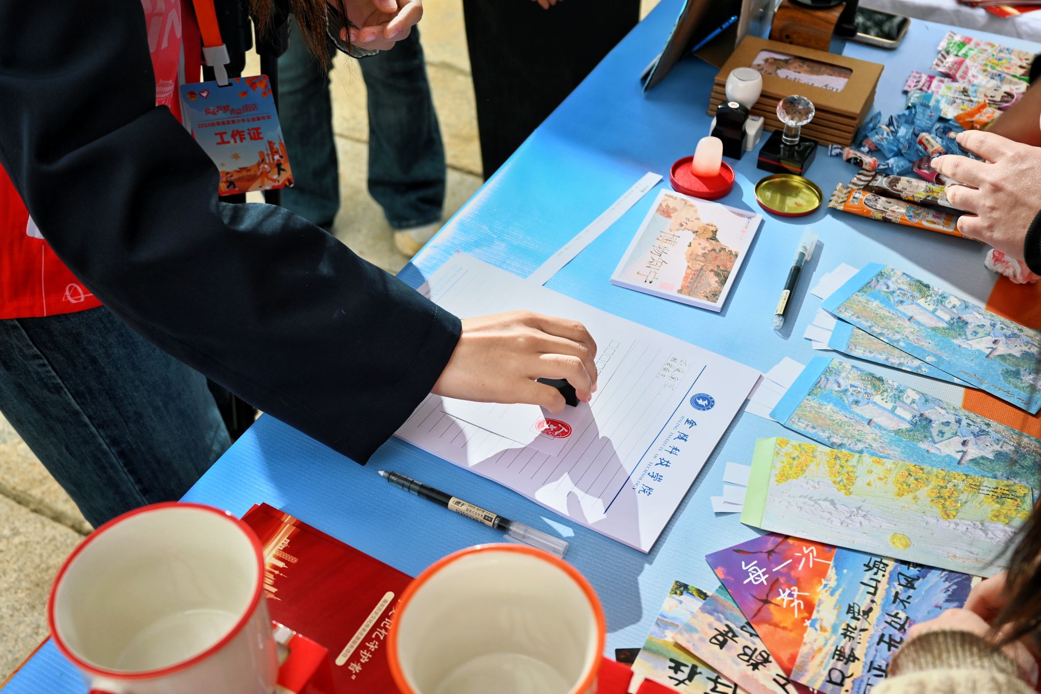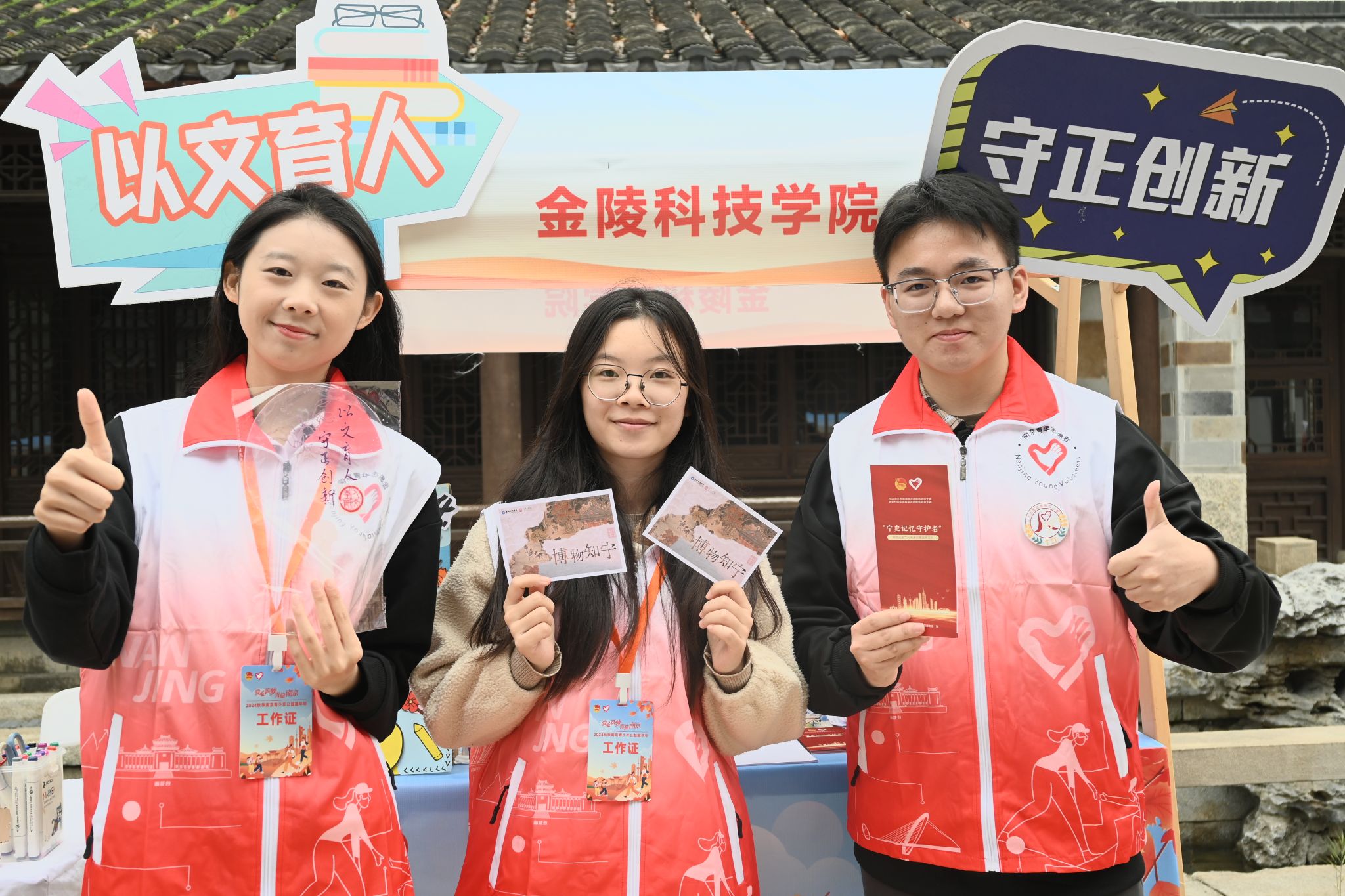 在本次公益盛会上,,,,,,“宁史影象守护者”团队成员充分验展项目特色,,,,,,全心设计制作了明信片和打卡印章,,,,,,这些具有人文历史文化特色的文创产品吸引了众多青少年朋侪的眼光。。。。。。。。别的,,,,,,他们凭证团队效劳理念,,,,,,自出机杼地设置了“南京历史文化知识小问答”和“我想对宁说”的互动环节,,,,,,让加入者在运动中感受六朝古都的悠久秘闻,,,,,,表达对南京的热爱。。。。。。。。