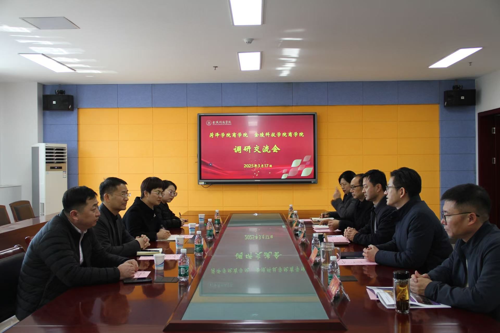 3月17日,,,,,,菏泽学院商学院党委书记尹鹏、院长高洁、院长助理高辉、教科办主任马飞一行4人到访我院,,,,,,商学院党委书记徐立岗、院长刘磊、副院长陶应虎、商业系主任华树春、教学办主任熊杜宁加入交流。。。。。双方就学科建设、人才作育、科研生长等要害议题睁开深入交流,,,,,,配合为两院的未来生长谋篇结构。。。。。