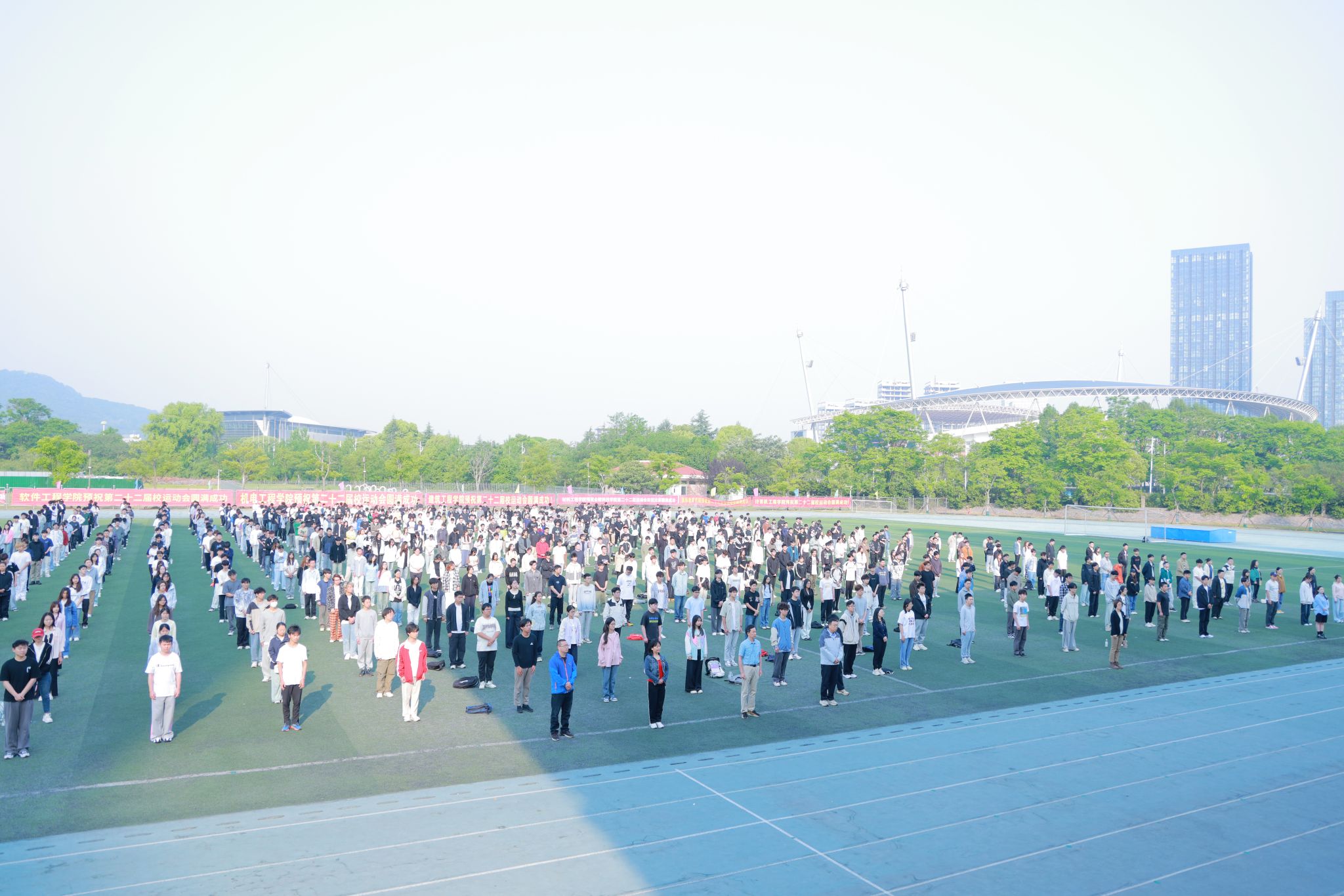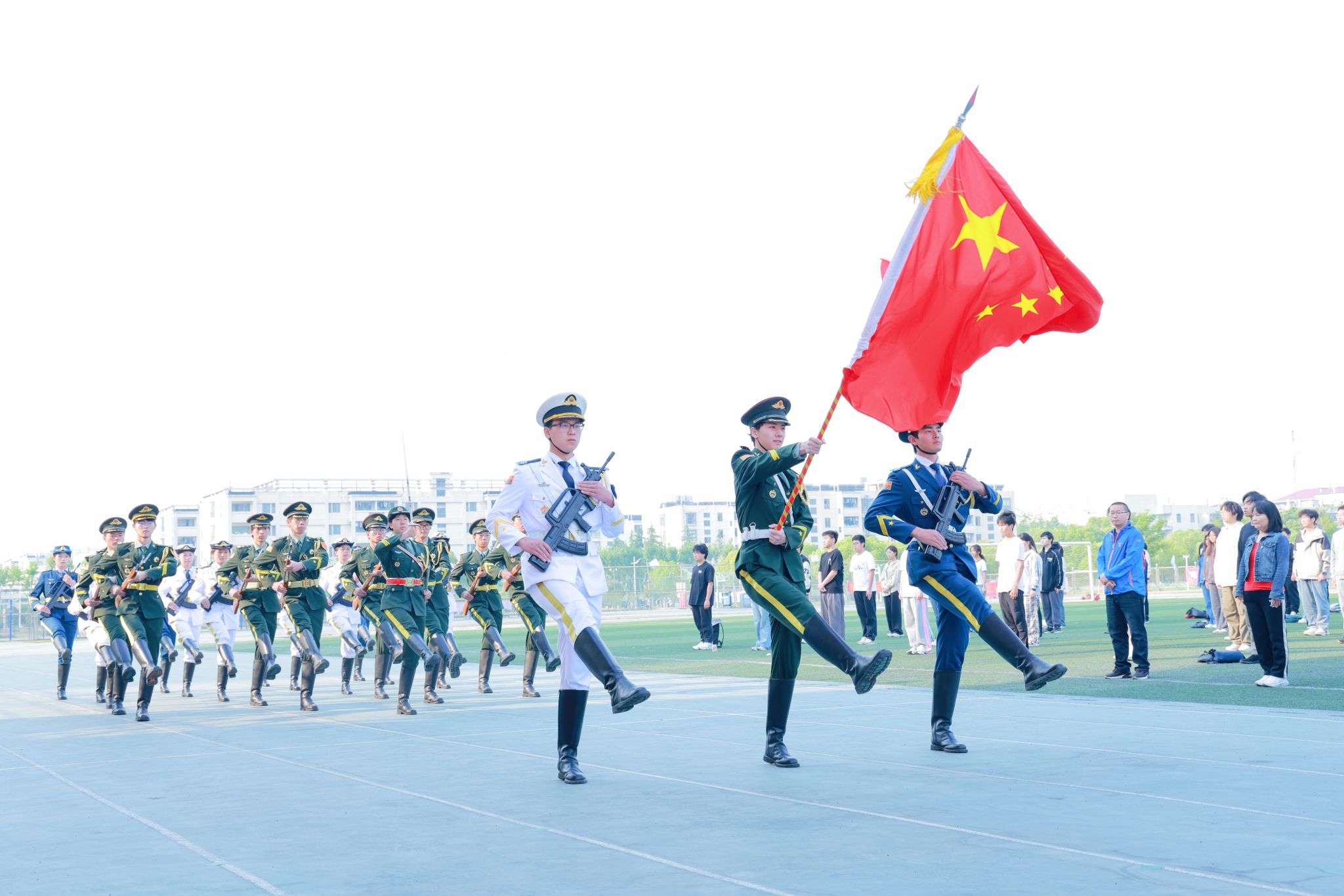 4月28日清早,,,,,,,网络与通讯工程学院师生齐聚江宁校区北区田径场,,,,,,,盛大举行升国旗仪式,,,,,,,共上“国旗下的思政课”。。。。。。本次仪式由党委学生事情部、党委人民武装部主理,,,,,,,网络与通讯工程学院党委承办,,,,,,,党委学生事情部、党委人民武装部及网络与通讯工程学院相关认真人、全体向导员和700余名学生加入了本次仪式。。。。。。