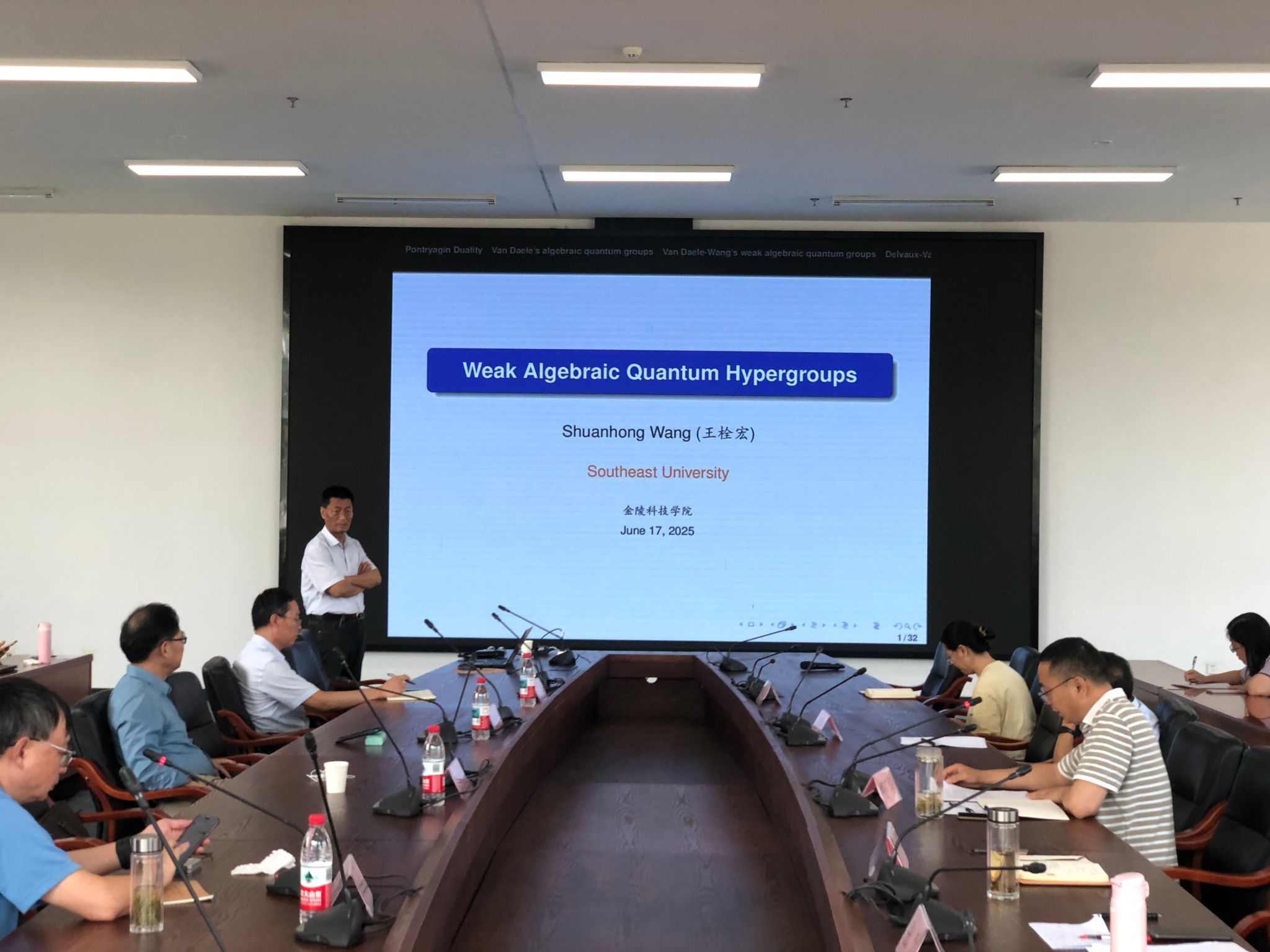 6月17日下昼,,,,,,,,东南大学王栓宏教授、南京农业大学张良云教授、扬州大学李立斌教授应邀来理学院作学术报告,,,,,,,,南京晓庄学院国有资产治理随处长王勇、南京工程学院西席晏冬冬和张涛随行来访,,,,,,,,理学院师生加入了报告会。。。。。。。。