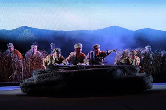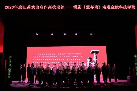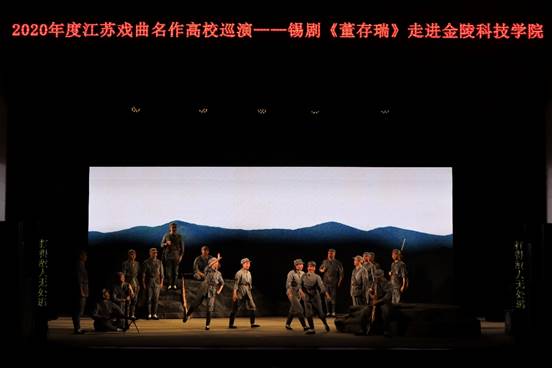 12月14日,,,,,,红色军旅锡剧《董存瑞》在江宁校区大学生运动中心剧场上演,,,,,,该场剧目是江苏艺术基金2019年度大型舞台资助项目,,,,,,由江苏省演艺集团锡剧团举行演出。。。。。。。。锡剧团成员充分运用唱念做打的演出形式,,,,,,再现了勇往直前的战争年月,,,,,,为宽巨匠生谱写了一曲极具教育意义的英雄赞歌。。。。。。。。