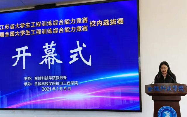 克日,,,,,第六届江苏省大学生工程训练综合能力竞赛暨第七届天下大学生工程训练综合能力竞赛校内选拔赛在江宁校区举行。。。。。。。本次大赛由教务处主理,,,,,机电工程学院承办。。。。。。。教务随处长苏慧、教务处副处长陆慧、机电工程学院院长周金宇、机电工程学院党委副书记张蓉、机电工程学院副院长高素美及相关评审先生加入了选拔赛。。。。。。。选拔赛开幕式由高素美主持。。。。。。。