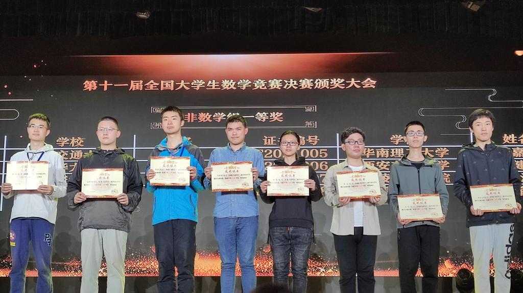 4月17日、18日,,,,,,,第十一届天下大学生数学竞赛决赛在武汉大学举行,,,,,,,共有来自天下31个赛区204所高校的605名学生加入。。。。。。在与来自天下双一流、985等著名高校学生的同场竞技中,,,,,,,理学院高等数学竞赛团队指导的商学院17级金融学专业陆潇同砚以天下第7名,,,,,,,江苏省第2名的优异效果荣获一等奖,,,,,,,这是此项赛事举行以来,,,,,,,我校学生首次入围天下决赛并取得的最高奖项。。。。。。