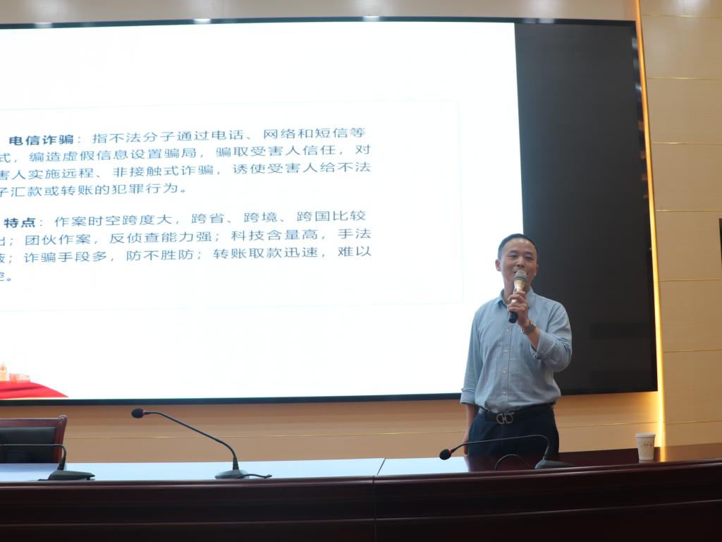 孙敏从熟悉征信内容、提高反诈能力、树立准确看法三个方面举行解说。。。。。。。。他就征信看法、征信报告的爆发和用途、征信爆发逾期的效果及怎样坚持优异的小我私家征信等作了详细先容,,,,,,,,引用大宗实例解说了校园贷、刷单诈骗、助学金诈骗等电信诈骗形式及提防要领。。。。。。。。他指出,,,,,,,,要做到诚信做人、提防诈骗最基础的是树立准确的天下观、人生观、价值观,,,,,,,,坚持高尚的人生追求,,,,,,,,做到理性消耗,,,,,,,,才华阻止掉入层出不穷的圈套。。。。。。。。