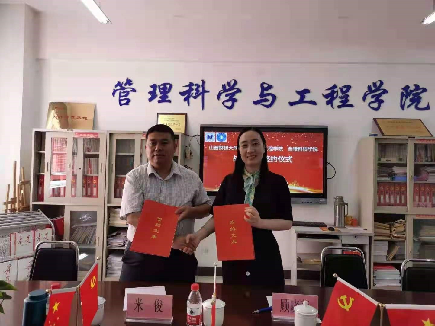 双方就研究生相助作育事宜举行了交流并签署了团结作育研究生基地相助协议。。。。。。。。签约仪式后,,,,,,顾晓燕一行在米俊的陪同下旅行了山西财经大学治理科学与工程学院。。。。。。。。