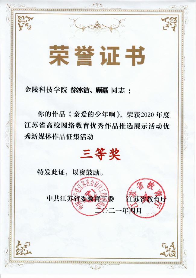 本次运动以“学习‘四史’践使命,,,,,,,,撒播青春正能量,,,,,,,,争做校园好网民”为主题,,,,,,,,旨在进一步深入学习贯彻习近平新时代中国特色社会主义头脑,,,,,,,,推动宽巨匠生起劲加入网络文化作品创作生产,,,,,,,,扩大高校网络文化影响力。。。。。。。。商学院选送的4部作品中,,,,,,,,《微笑—翻开心灵之窗》《一念之间》获2020年度江苏省大学生网络文化节微影戏作品征集运动二等奖,,,,,,,,《大中国》《亲爱的少年啊》划分获2020年度江苏省高校网络教育优异作品推选展示运动优异新媒体作品征集运动二等奖和三等奖。。。。。。。。这是商学院在省级网络文化节评选中的一次突破,,,,,,,,也是学院网络文化宣传事情的新起点,,,,,,,,学院将继续勉励指导宽巨匠生起劲加入网络文化作品创作生产,,,,,,,,深入推进网络育人建想程序,,,,,,,,提升新时代头脑政治事情的时代感和吸引力。。。。。。。。