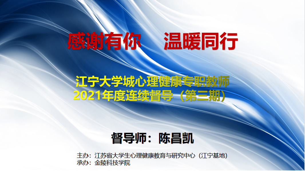 本次督导是江宁大学城2021年度一连培训的第三期,,,,,我校通过起劲承办及加入督导运动,,,,,为江宁大学城各兄弟院校的专兼职咨询师提供了学习探讨学生重大心理情形的名贵时机,,,,,让各人可以以更饱满的精神投入到学生效劳事情中去。。。。。。。。