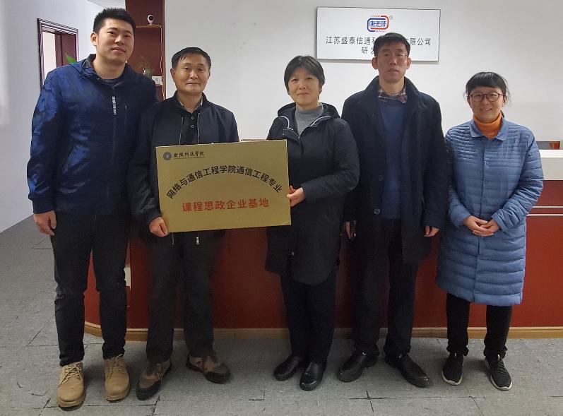 11月18日下昼,,,,,网络与通讯工程学院通讯工程专业 “课程思政企业基地”挂牌仪式在江苏盛泰信通科技生长有限公司举行。。。。。。。。江苏盛泰信通科技生长有限公司总司理唐修连、网络与通讯工程学院党委书记陈健及通讯工程系相关认真人加入了挂牌仪式。。。。。。。。