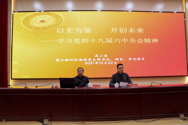 12月22日下昼,,,,,商学院举行学习贯彻党的十九届六中全会精神向导报告会,,,,,约请渡江胜利纪念馆党支部书记、馆长、研究馆员吴小宝作向导报告,,,,,商学院向导班子、全体教工及学生代体现场聆听了报告。。。。。。。报告会由商学院党委书记周骏主持。。。。。。。