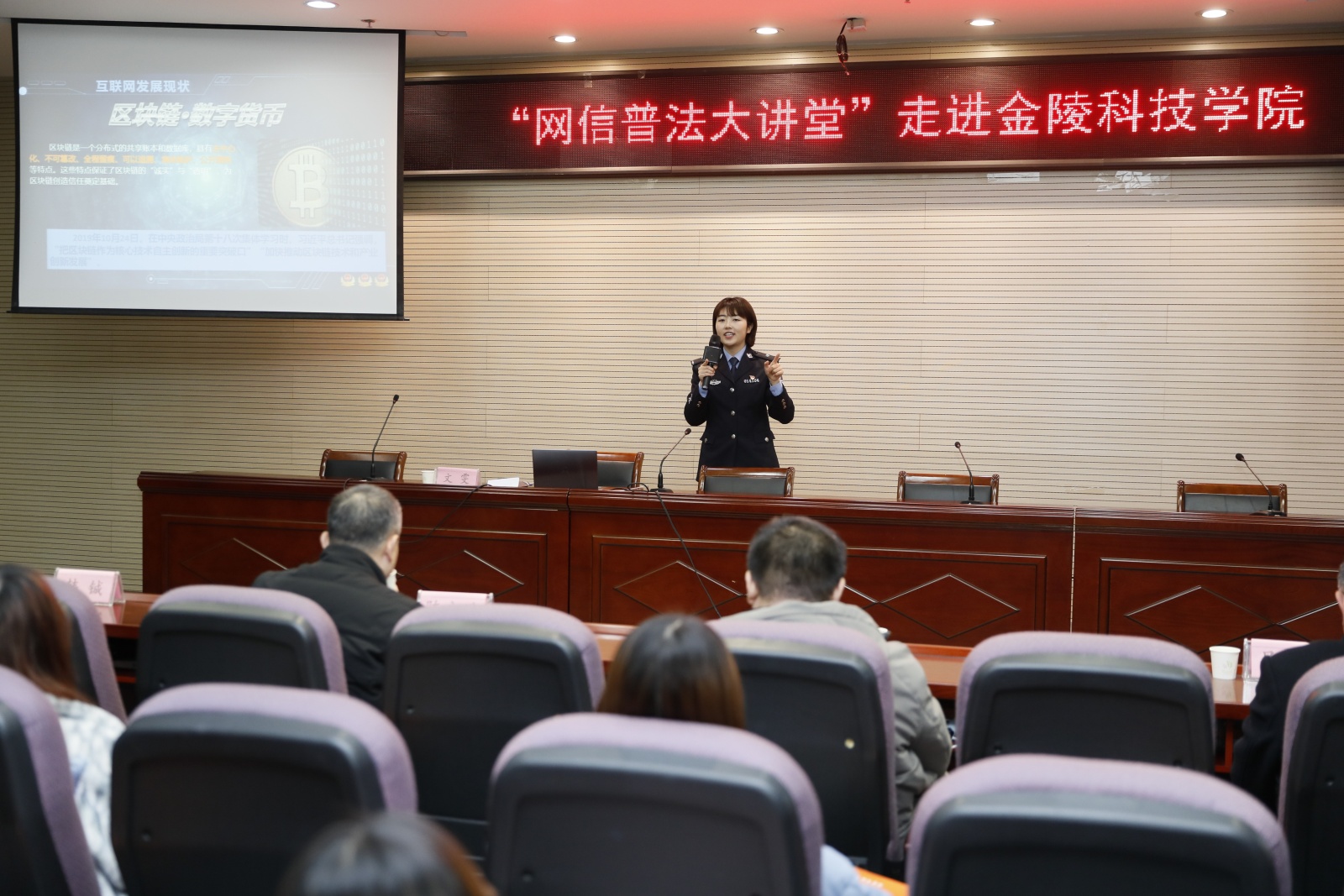 为进一步推动全市法治事情深入开展,,,,,,,,提升网信普法水平,,,,,,,,助推全市网络综合治理系统建设,,,,,,,,12月27日下昼,,,,,,,,南京“网信普法大课堂”走进我校,,,,,,,,指导青年学生文明上网、清静上网。。。。。。。。南京市互联网信息办公室网络信息治理执法随处长方亚东、一级主任科员杨东辉,,,,,,,,南京市委机关刊物《金陵瞭望》副总编陈永进,,,,,,,,人文学院党委书记吴轶军,,,,,,,,副书记韩铖加入了本次运动。。。。。。。。本次运动举行图片直播,,,,,,,,逾7000名网友在线同步接受了普法教育。。。。。。。。