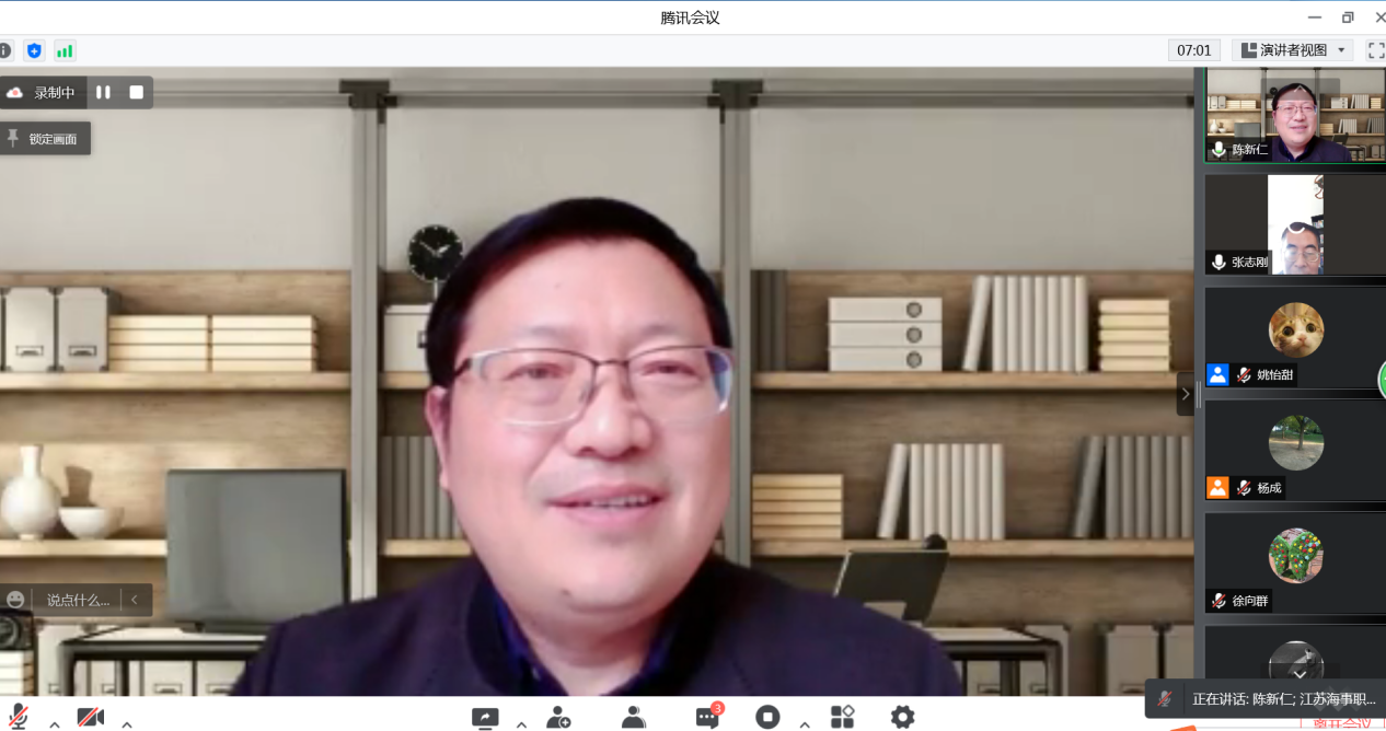 4月19日下昼,,,,,南京大学外国语学院教授、博士生导师陈新仁应邀为我校师生作题为《中文社交媒体中“凡尔赛式”诉苦语的语用探讨》的线上学术讲座。。。。。。。。讲座由外国语学院副院长张志刚主持,,,,,共计500余名师生聆听了讲座。。。。。。。。