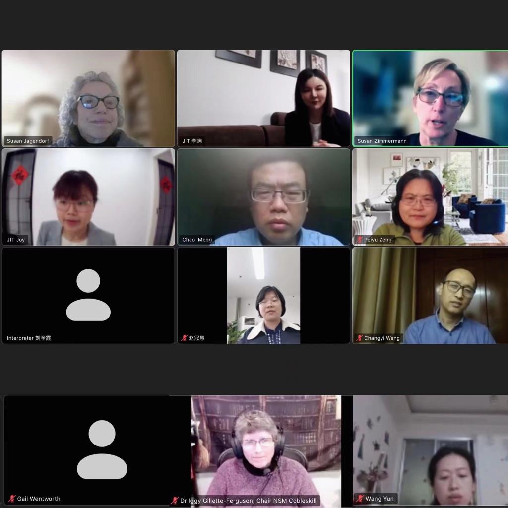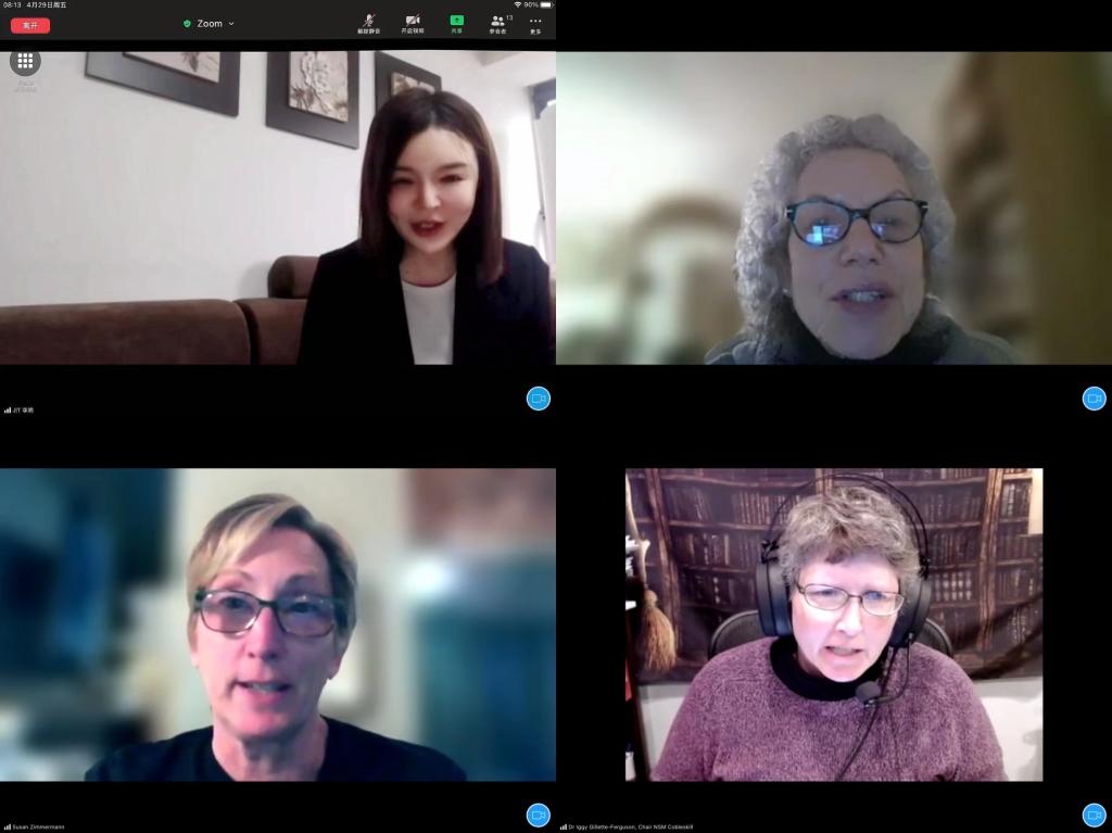 4月29日上午,,,,,,,国际相助与交流处与纽约州立大学科贝尔斯基尔农业与手艺学院举行线上洽谈。。。。。。纽约州立大学科贝尔斯基尔农业与手艺学院副校长Susan Zimmermann、文理学院院长Gail Wentworth、国际教育执行主任Susan Jagendorf-Sobierajski、自然科学与数学系主任Illona Gillette-Ferguson及中美园艺(生物手艺)项目首席教员Peiyu Zeng,,,,,,,我校国际相助与交流处、国际教育学院、园艺园林学院及中美园艺(生物手艺)项目认真人加入了洽谈。。。。。。