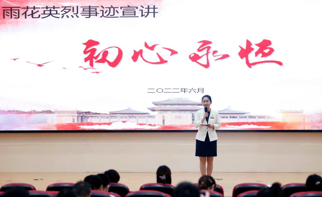 雨花台义士陵园治理局社教部部长郭琦、副部长王粲很是重视,,,,,亲自向导曹丹妮、王笑、周鑫玥、陈建超等4名讲师为机关党委中心组成员作宣讲报告。。。。。。。其中,,,,,曹丹妮、王笑、周鑫玥等3名讲师都是江苏省五好解说员,,,,,曹丹妮曾作为南京市唯一选派的解说员加入了中宣部中国共产党历史展览馆解说事情。。。。。。。与会职员集中聆听了雨花英烈事迹宣讲团成员所作的英烈故事宣讲报告。。。。。。。宣讲团成员声情并茂地传承红色精神,,,,,讲述了邓中夏、谢士炎、何宝珍、李耘生、顾衡、汪裕先的革命事迹,,,,,给我们带来了一堂精彩的英烈故事宣授课。。。。。。。