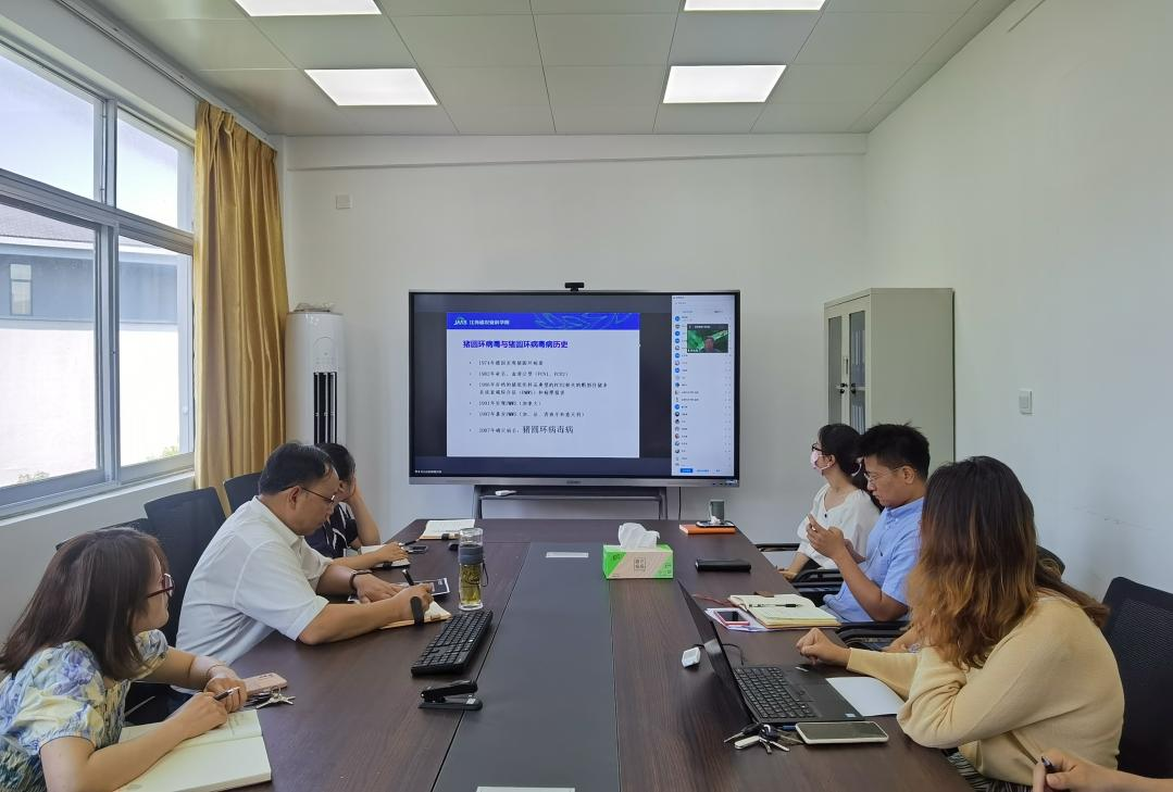 6月16日下昼,,,,,江苏省农业科学院畜牧兽医所所长何孔旺教授应邀做客金科学术课堂,,,,,为我校师生作了题为《一种最小基因组的动物病毒-类猪蕴厥狻毒的发明与致病特征研究》的线上学术讲座,,,,,动物科学与食物工程学院全体西席和其他学院部分师生在线聆听了讲座,,,,,讲座由动物科学与食物工程学院院长程泽信主持。。。。。。