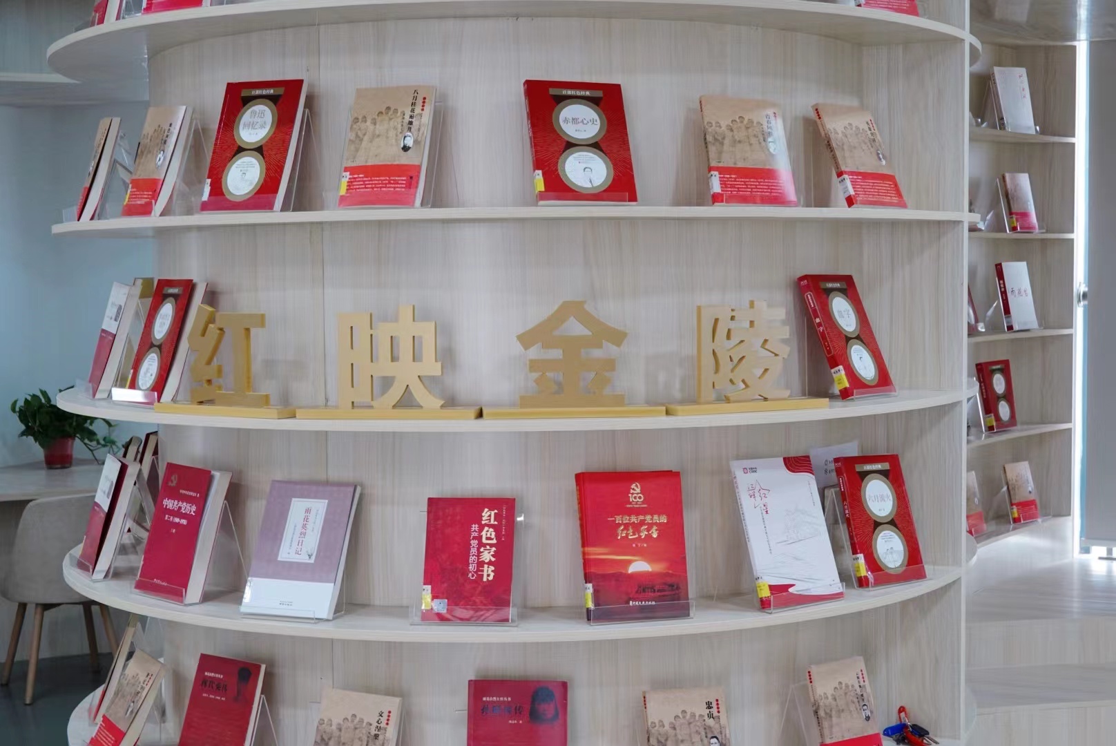 “金陵文学汇”分为红映金陵、文脉金陵、文系金陵、文心互鉴四大板块。。。。。。。。“红映金陵”主要展陈和推广南京党史相关图书文献,,,,,,,,“文脉金陵”主要展陈和推广南京历史上各个时期的文学巨著和佳作,,,,,,,,“文系金陵”主要展陈和推广近现代著名作家有关南京的文学作品,,,,,,,,“文心互鉴”主要展陈和推广天下文学之都其他成员都会的优异文学作品。。。。。。。。经由全心策划和分步实验,,,,,,,,现在“金陵文学汇”已完成空间设计、图书展陈并对师生开放,,,,,,,,基于都会文脉和面向高校师生的文学阅读推广事情取得优异效果。。。。。。。。