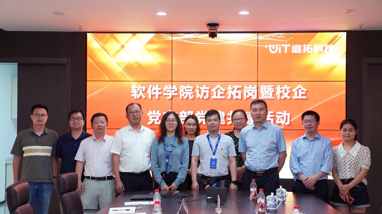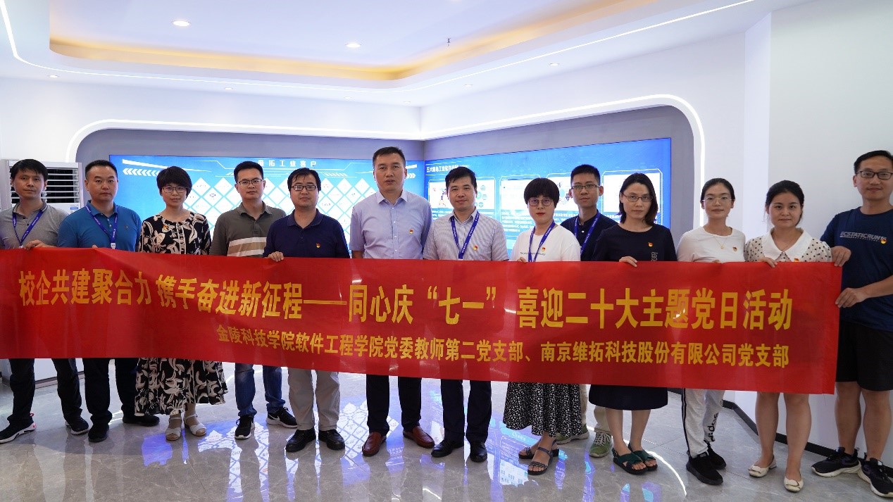6月30日下昼,,,,,,软件工程学院与南京维拓科技有限公司举行“访企拓岗”暨“校企共建聚协力 携手奋进新征程——同心庆‘七一’喜迎二十大”主题党日运动。。。。。。软件工程学院党委书记徐志国、院长曾岳、党委副书记徐斌、副院长胡勇、党员西席代表,,,,,,南京维拓科技有限公司董事陈金华和副总司理、党支部书记丁亮、企业党员代表加入了运动。。。。。。