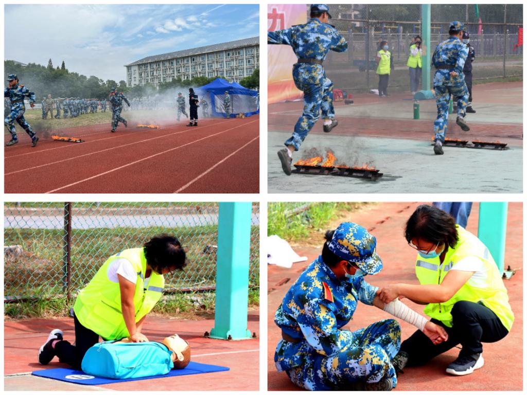 上午9时,,,,,,,,守卫处现场总指挥宣布“2022级新生消防进军训消防演练运动最先”,,,,,,,,现场拉响“119”警报,,,,,,,,各演练方阵有序举行各科目的演练。。。。。。。演习中,,,,,,,,学生们听从指挥,,,,,,,,分批次有序收支逃生屋,,,,,,,,跨越前方,,,,,,,,抢救职员对在火场逃生时“受伤的职员”划分举行头部、胳膊受伤包扎和心肺苏醒救护演练。。。。。。。