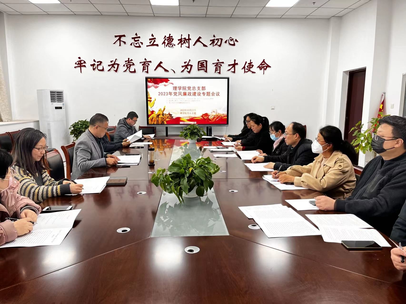 3月22日下昼,,,,,,理学院党总支部召开党风廉政建设专题聚会,,,,,,院向导,,,,,,党总支部委员,,,,,,各支部书记和各系、室、中心认真人加入聚会。。。。。。党总支部书记雍海龙主持聚会。。。。。。
