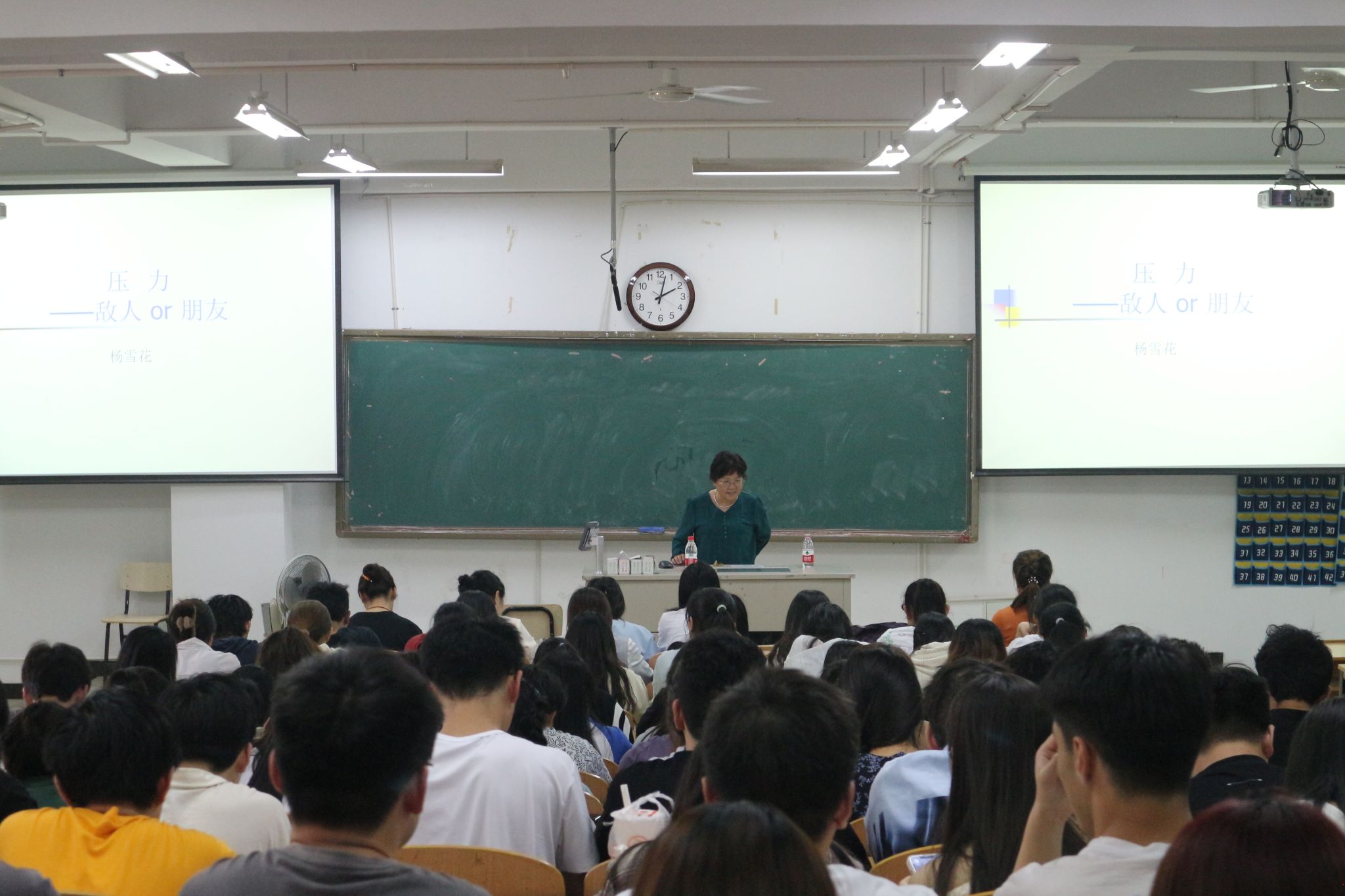 杨雪花以“压力——仇人or朋侪”为主题,,,,,从什么是情绪及情绪的作用入手,,,,,团结真实的数据与案例,,,,,指导同砚们要改变对压力的认知,,,,,树立准确的价值观和人生观,,,,,正向转化压力,,,,,康健生涯。。。。。