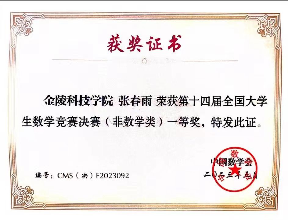 5月26日至28日,,,,,由中国数学会主理、广东工业大学和广东省数学会承办的十四届天下大学生数学竞赛决赛在广东工业大学(大学城校区)举行。。。。。。。共有来自北京大学、清华大学、复旦大学等1024所高校,,,,,逾23万名学生参赛,,,,,最终来自天下32个赛区的922名学生跻身本次赛事决赛。。。。。。。经由强烈的角逐,,,,,由理学院高等数学竞赛西席团队指导的机电工程学院19修建电气与智能化(2)班的张春雨同砚(已被南京航空航天录取为硕士研究生)荣获一等奖。。。。。。。这是继商学院陆潇同砚于2021年荣获一等奖后,,,,,我校学生在决赛中再次斩获一等奖。。。。。。。