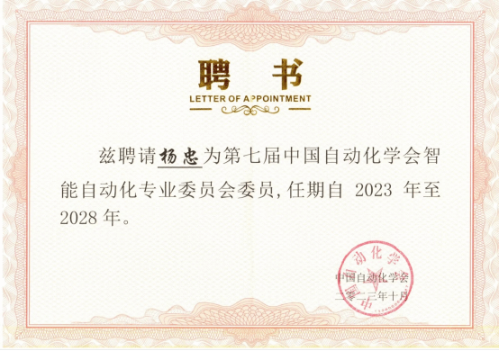 聚会时代,,,,,,大会召开了中国自动化学会智能自动化专业委员会聚会,,,,,,完成了第七届中国自动化学会智能自动化专业委员会换届等议程,,,,,,杨忠中选连任第七届中国自动化学会智能自动化专业委员会委员。。。。。。杨忠体现,,,,,,加入此次大会对学院在人才作育、教学科研、学科建设等方面将起到起劲的增进作用。。。。。。