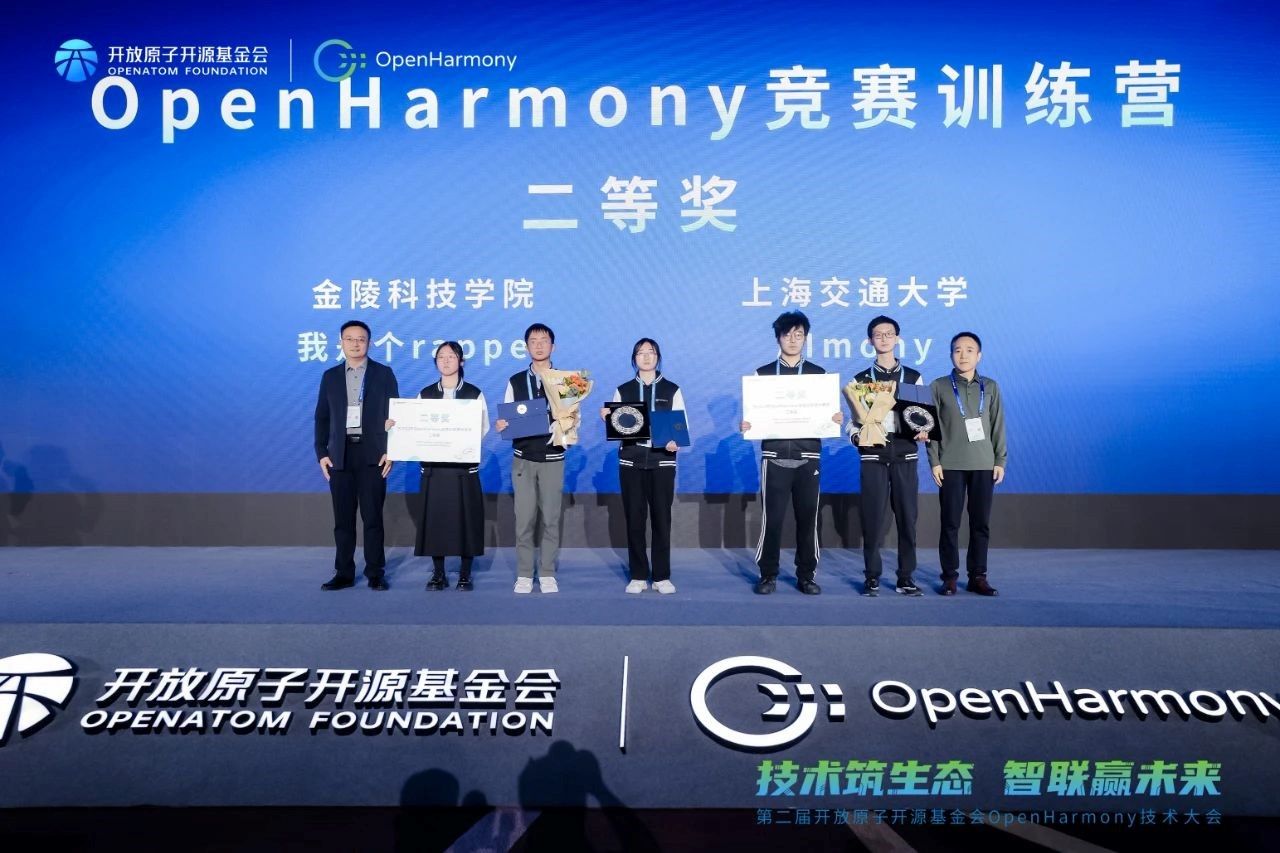 克日,,,,,,,,软件工程学院开放原子社团开源社(简称开源社)在北京国家聚会中心获得首届OpenHarmony竞赛训练营二等奖。。。。。。。本次竞赛由OpenAtom OpenHarmony项目群事情委员会和OpenHarmony项目群手艺指导委员会主理,,,,,,,,历时2个月,,,,,,,,吸引了来自上海交通大学、复旦大学、电子科技大学、湖南大学等75个赛队共200+学生报名加入,,,,,,,,其中重点本科学院笼罩85%。。。。。。。