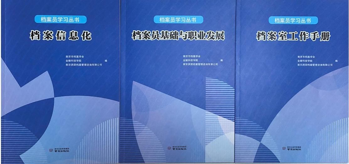 该套丛书共三本。。。。。其中《档案信息化》由人文学院许剑颖、徐润华编写,,,,,主要叙述网络情形下档案治理与档案效劳的信息化建设与实践运用;;;;;;《档案员基础与职业生长》由人文学院刘丹、李文文编写,,,,,主要内容是档案员必需掌握的基础知识和基本手艺;;;;;;《档案室事情手册》由档案馆程娟编写,,,,,主要叙述做好档案室事情的主要内容、基本要领和详细流程。。。。。