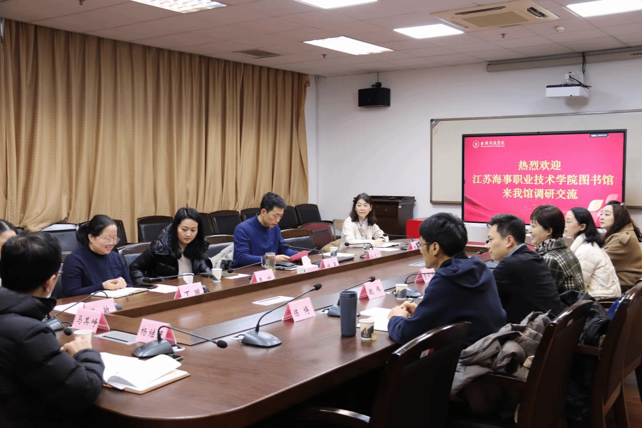 1月19日上午,,,,,,江苏海事职业手艺学院图书馆图书与档案馆直属党支部书记曹晓妹、图书馆档案馆馆长魏伟一行来我校图书馆调研交流,,,,,,图书馆馆长许晨及相关部分主任加入了聚会。。。。。。。。
