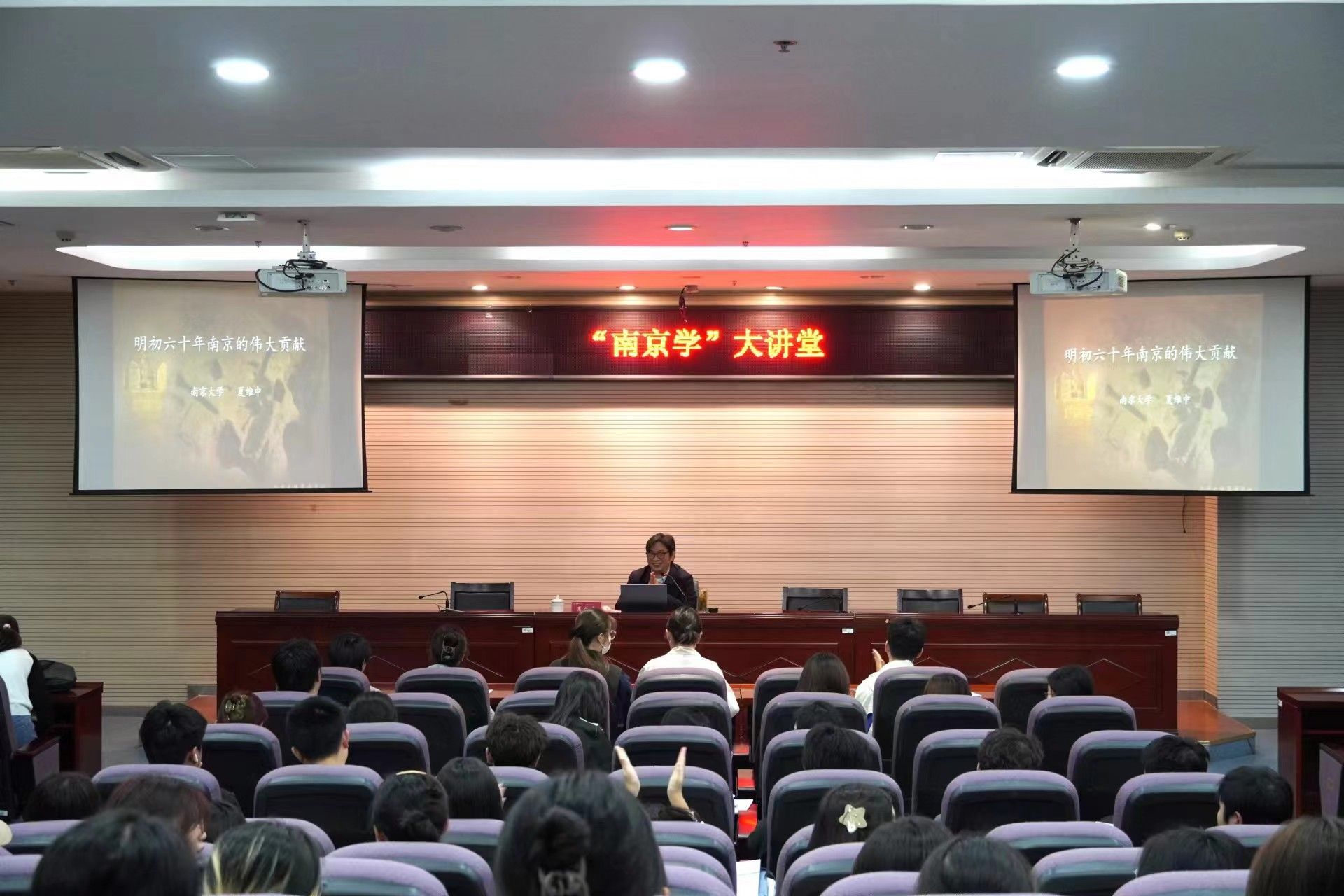 夏维中聚焦于明初六十年南京的伟大孝顺,,,,,,,围绕三个要害议题睁开:明代建都南京后所带来的影响,,,,,,,南京城的营界以及明初洪武模式。。。。。。。夏维中团结历史和考古多元视角,,,,,,,从朱元璋的早期履历到元末农民起义,,,,,,,从明朝的制度变迁到文化昌盛,,,,,,,从明故宫到大报恩寺的掘客,,,,,,,详细解说了明初南京的文化成绩,,,,,,,使现场师生似乎置身于明朝的茂盛与沧桑之中。。。。。。。夏维中希望青年学生能够传承和弘扬南京的优异古板文化,,,,,,,做有继续和责任感的新时代大学生。。。。。。。