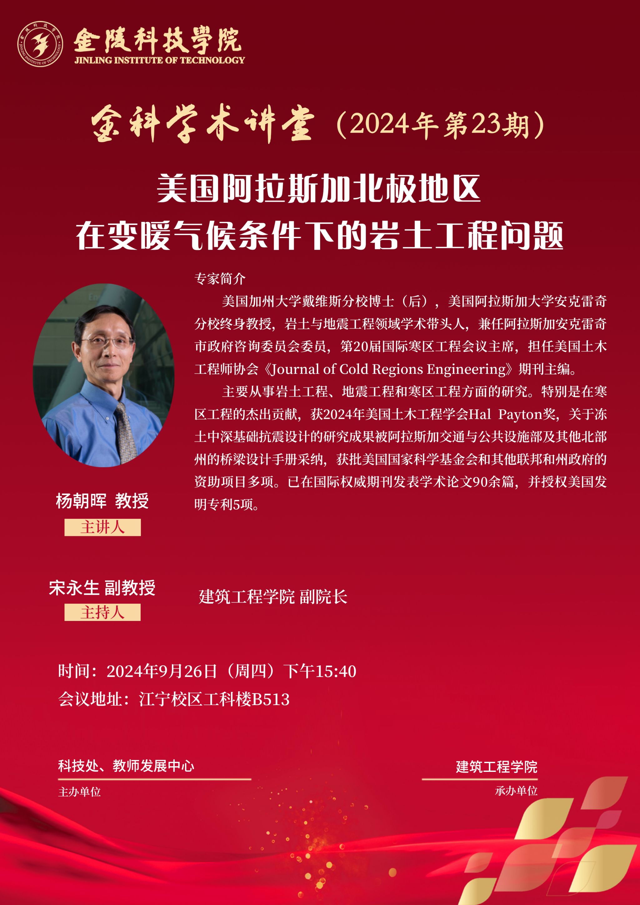 关于举行线下“金科学术课堂——美国阿拉斯加北极地区在变暖天气条件下的岩土工程问题”学术报告的通知