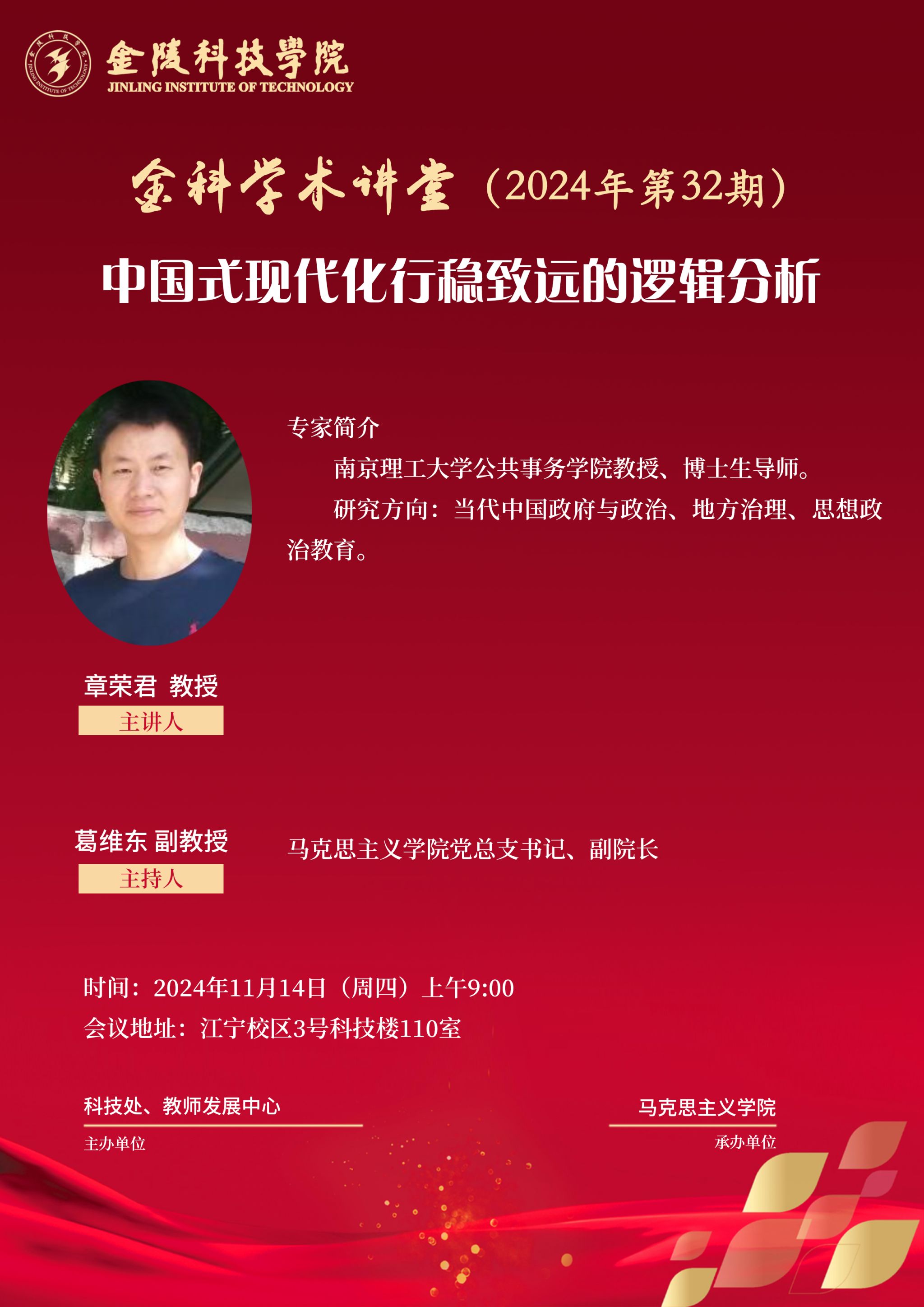 关于举行线下“金科学术课堂——中国式现代化行稳致远的逻辑剖析”学术报告的通知