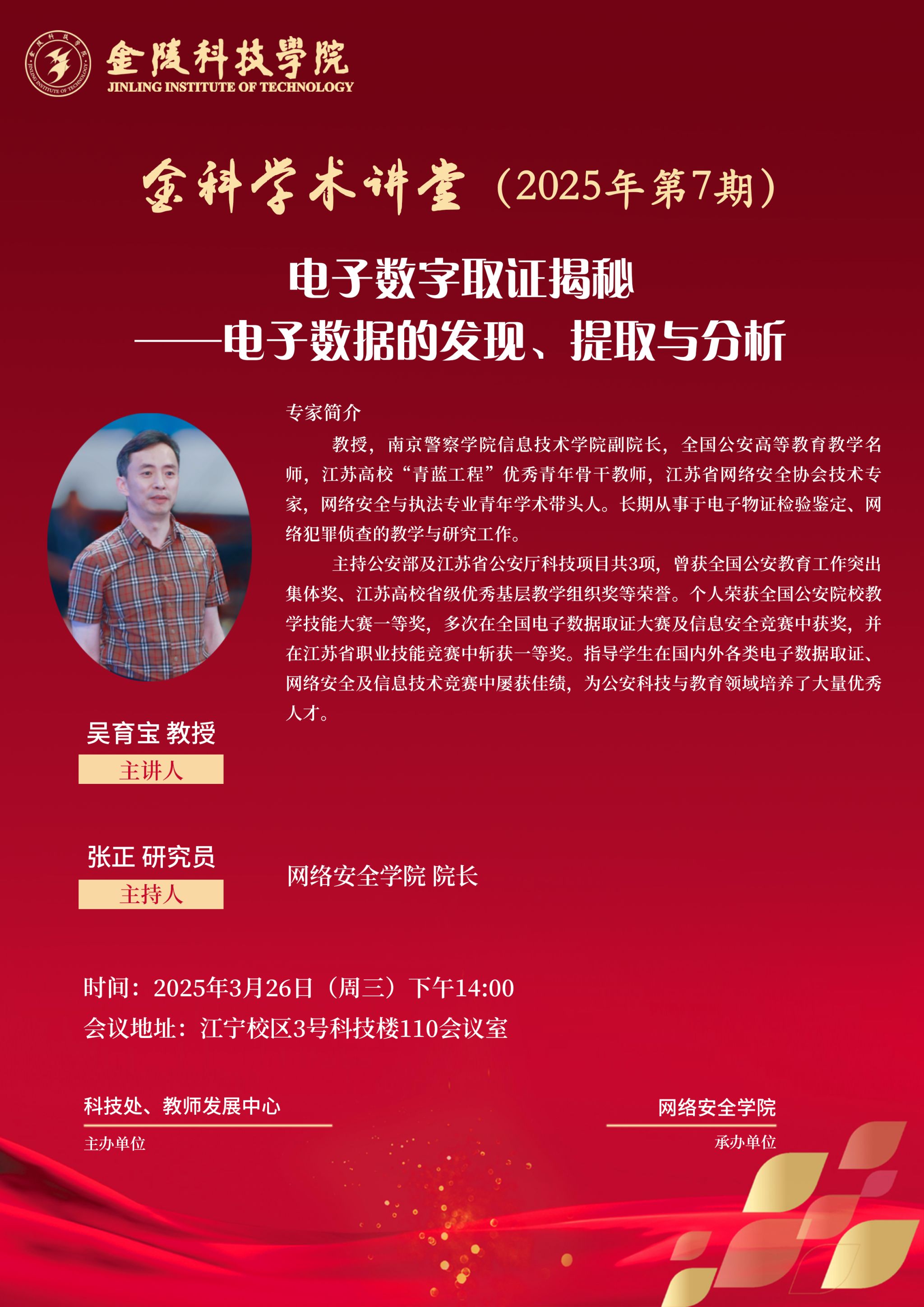 关于举行线下“金科学术课堂:电子数字取证揭秘——电子数据的发明、提取与剖析”学术报告的通知