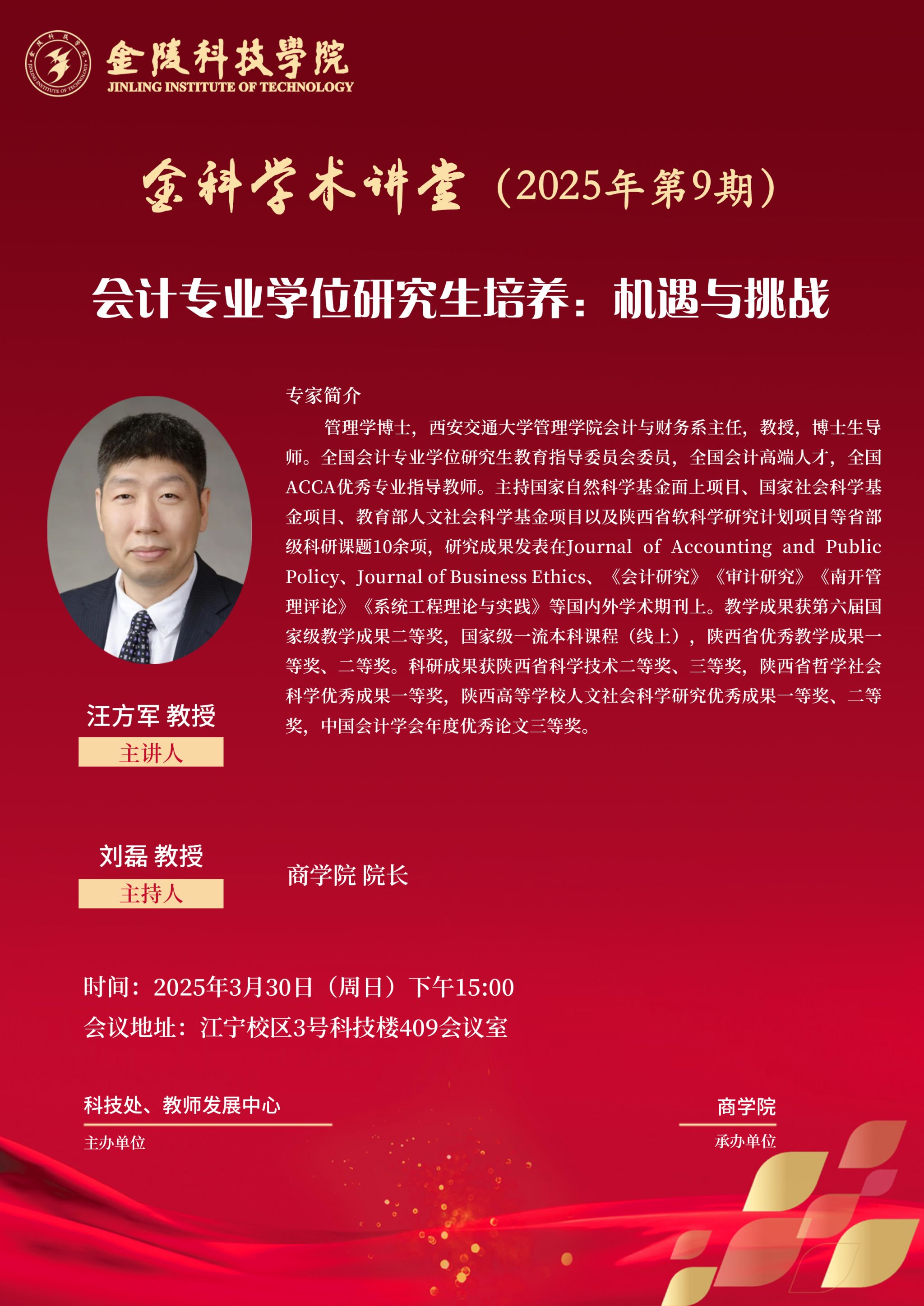 关于举行线下“金科学术课堂——会计专业学位研究生作育:机缘与挑战”学术报告的通知