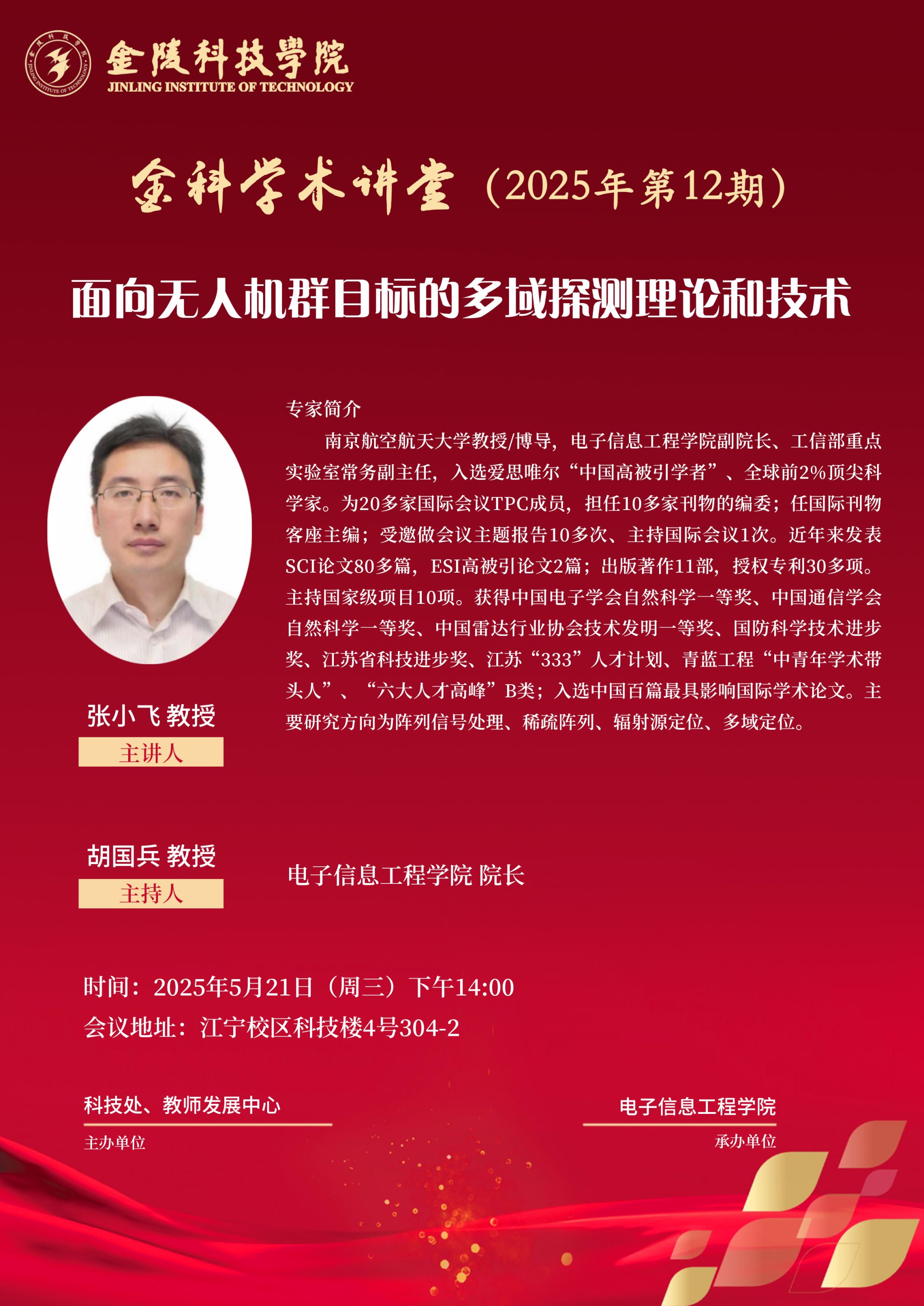 关于举行线下“金科学术课堂——面向无人机群目的的多域探测理论和手艺”学术报告的通知