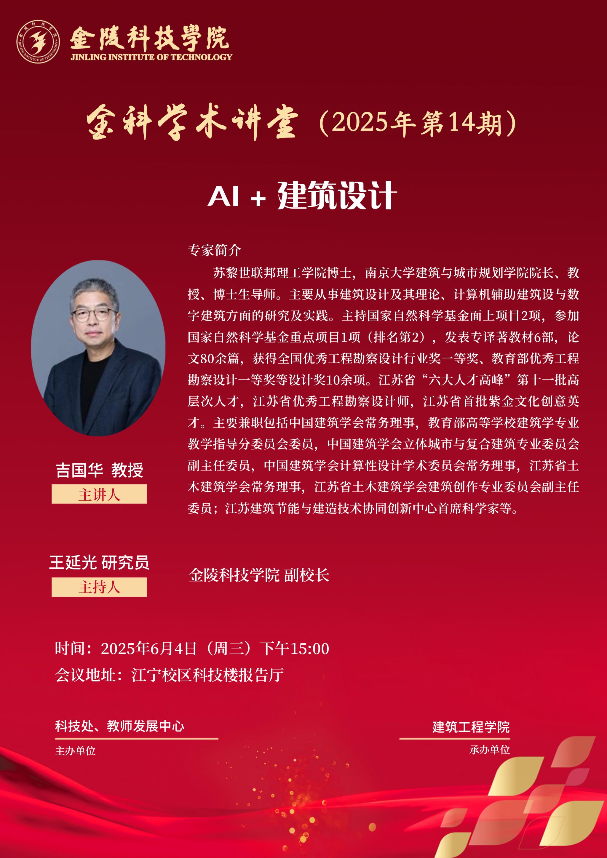关于举行线下“金科学术课堂——AI+修建设计”学术报告的通知