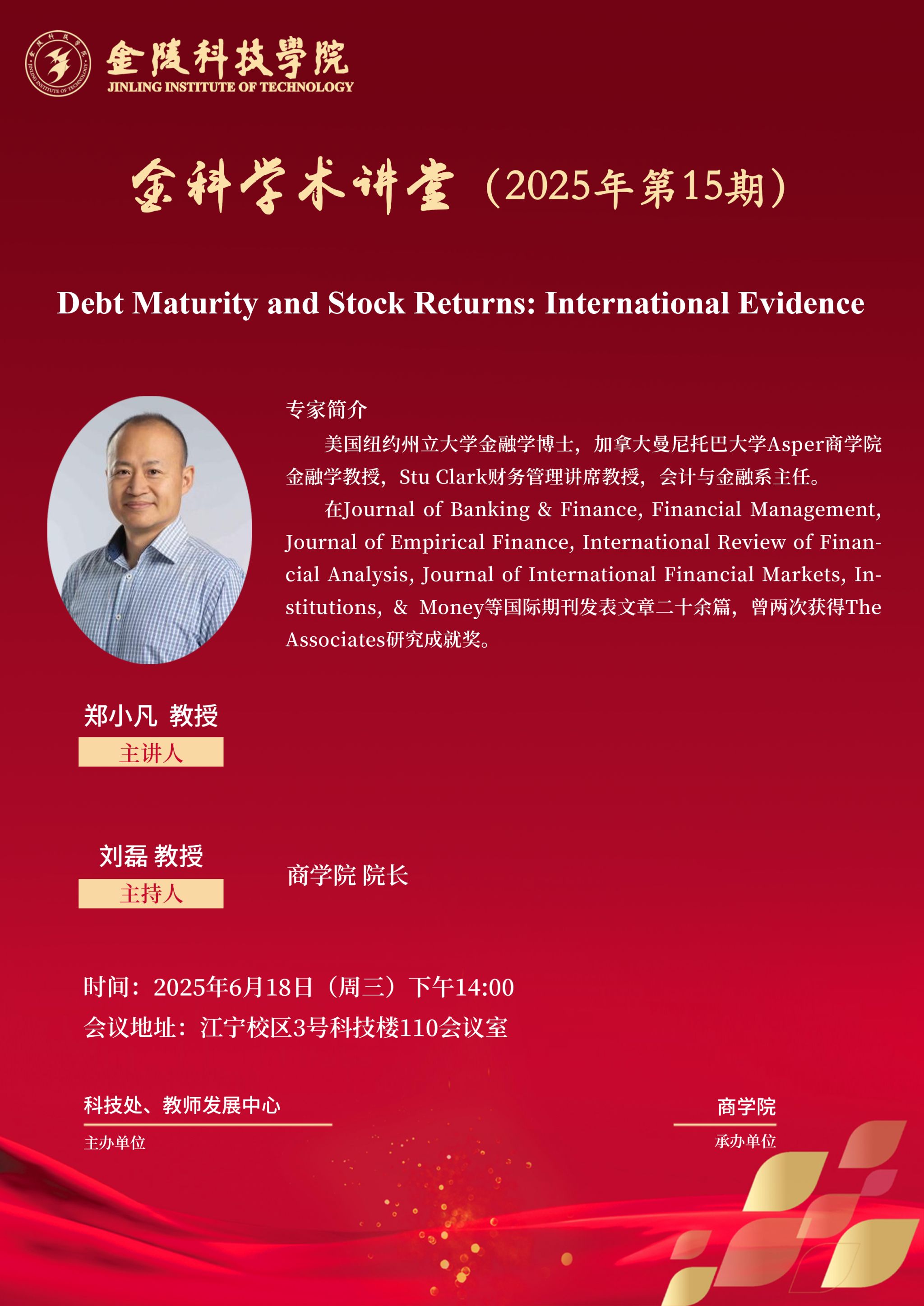 关于举行线下“金科学术课堂——Debt Maturity and Stock Returns: International Evidence”学术报告的通知