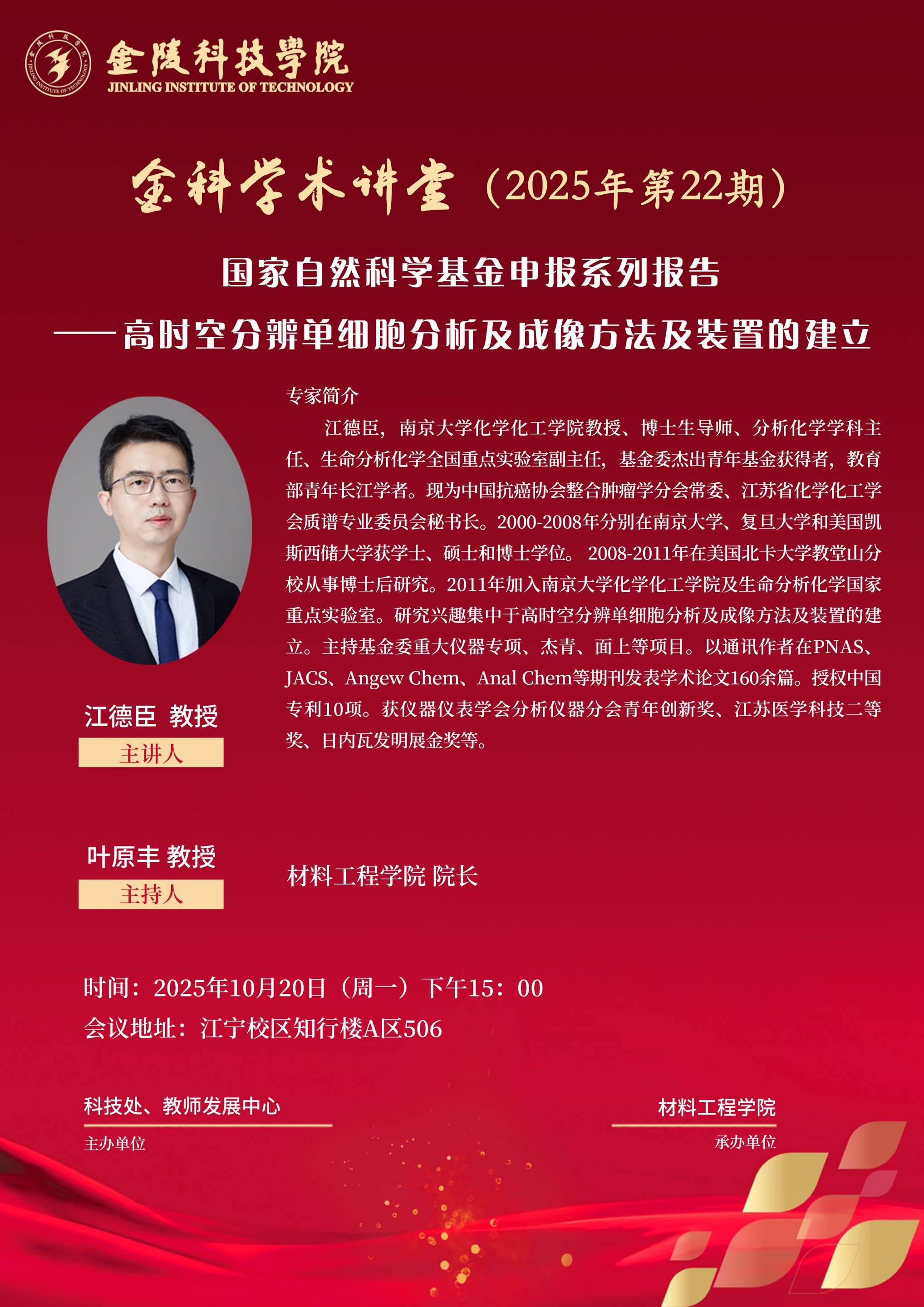 关于举行线下“金科学术课堂:国家自然科学基金申报系列报告——高时空区分单细胞剖析及成像要领及装置的建设”学术报告的通知