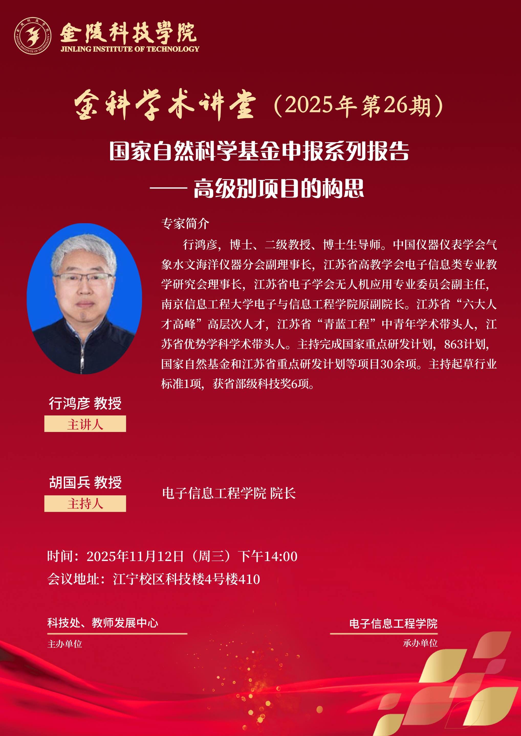 关于举行线下“金科学术课堂:国家自然科学基金申报系列报告——高级别项目的构想”学术报告的通知