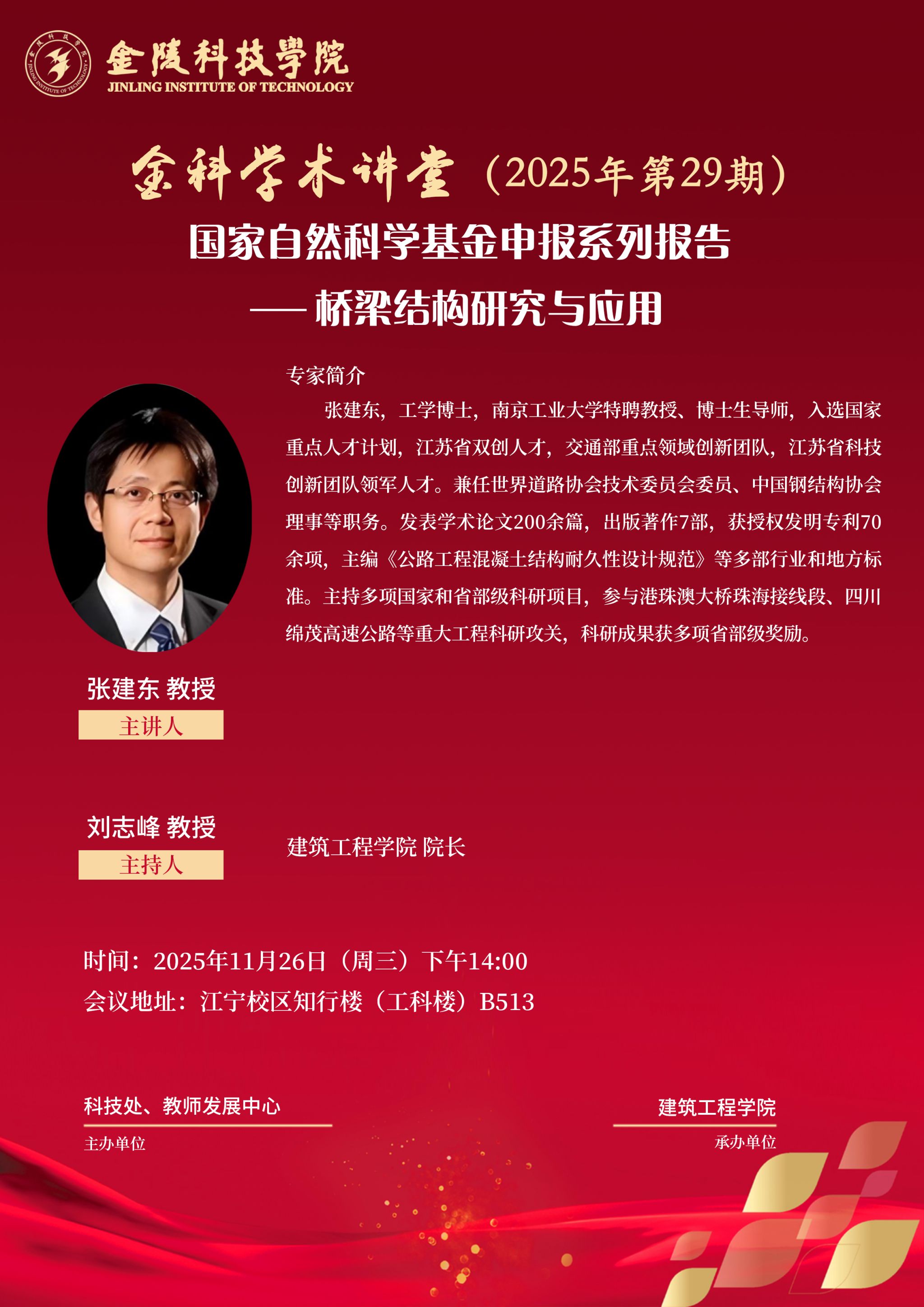 关于举行线下“金科学术课堂:国家自然科学基金申报系列报告——桥梁结构研究与应用”学术报告的通知