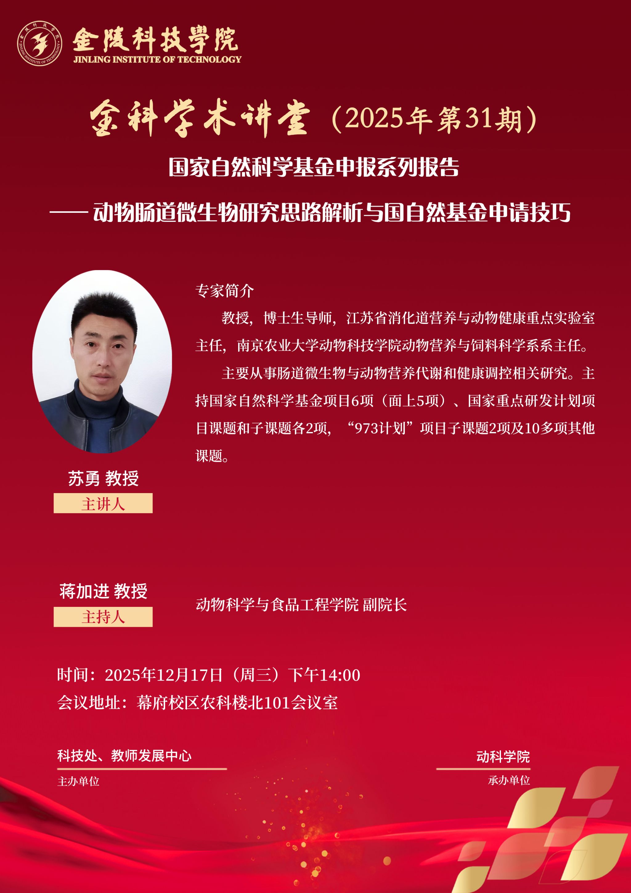 关于举行线下“金科学术课堂:国家自然科学基金申报系列报告——动物肠道微生物研究思绪剖析与国自然基金申请技巧”学术报告的通知
