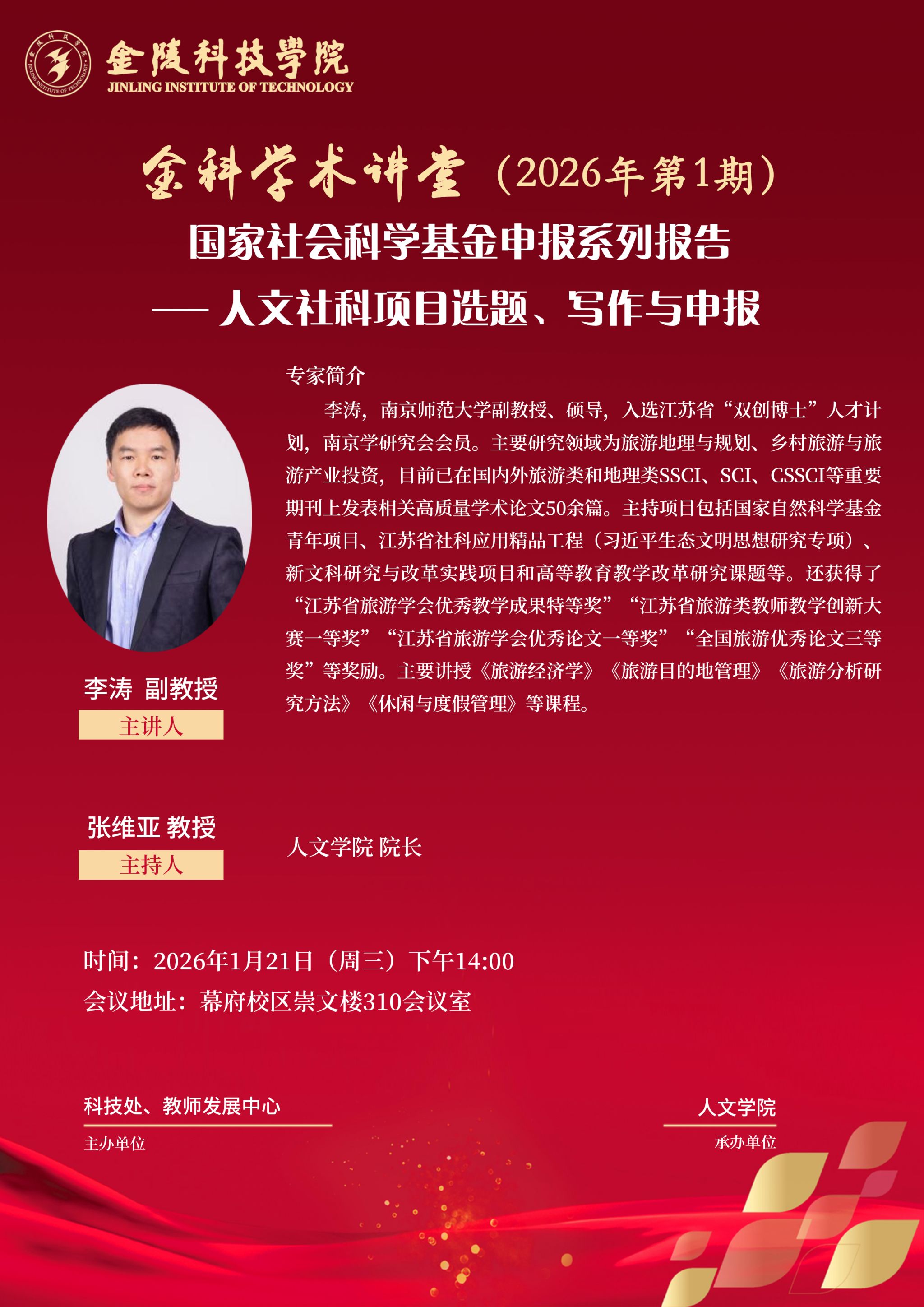 关于举行线下“金科学术课堂:国家社会科学基金申报系列报告——人文社科项目选题、写作与申报”学术报告的通知